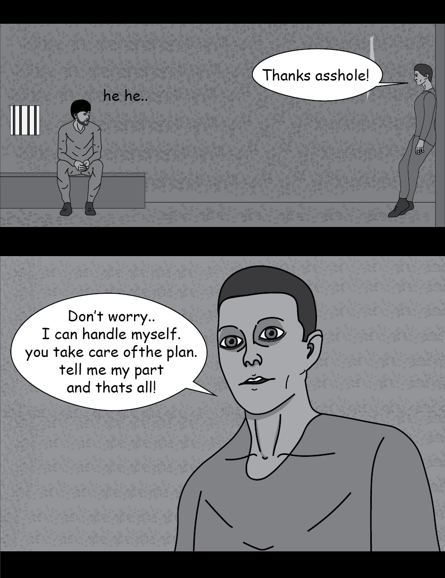 a temporary alliance is formed between the two cellmates for a common end. let's see how that turns out.