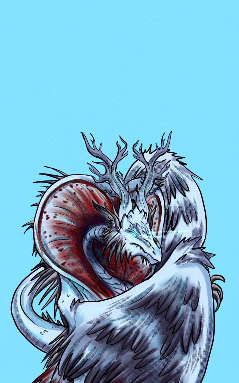 I'm part of the server Collab Carnival and Delyth from Mythic Mayhem (an awesome comic you should check out if you like mythology and folklore) hosted the theme 'draw your characters as dragons'. Can you spot which one of the Menagerie got the dragon treatment?