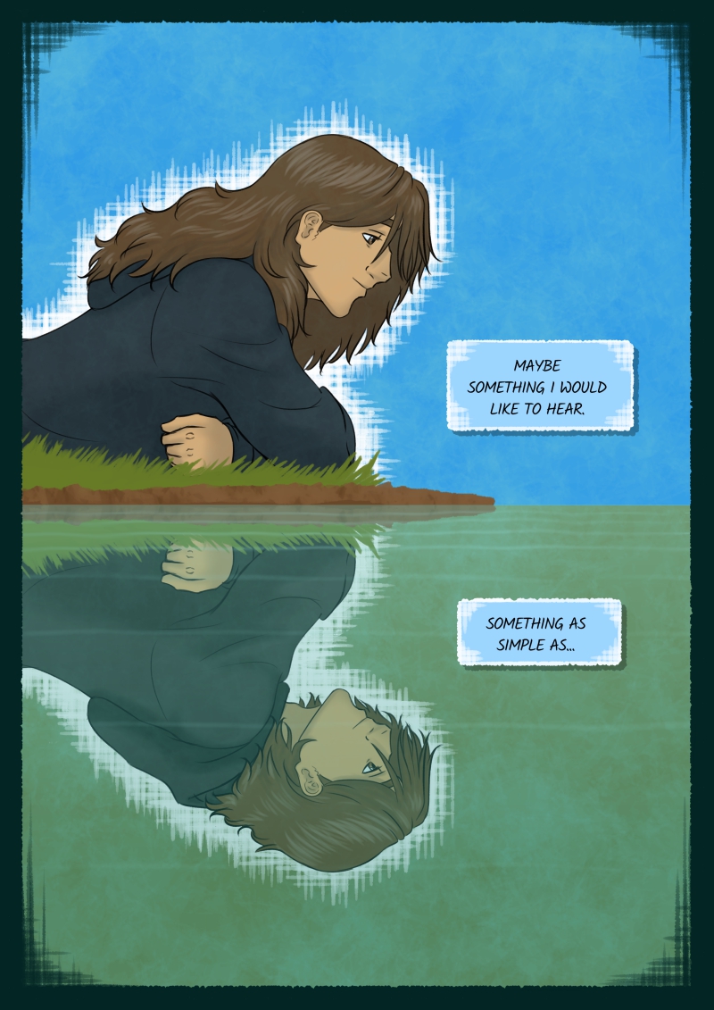 So, back to the comic, I enjoyed drawing this page. The reflections smiling at each other. Them recognizing themselves on each other. I felt embraced by the acceptance and the warmth in their eyes, my eyes, and it felt healing.