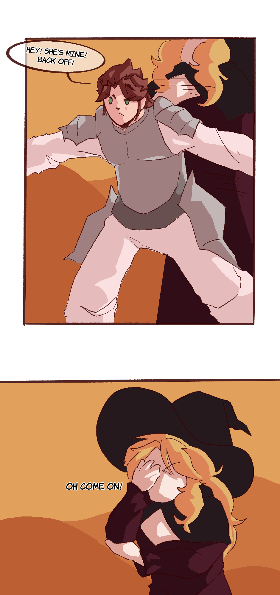 What happens when you’re isekai’d from your bedroom in the middle of a traumatic event and dropped into a field of amber waves of grain? Naturally, you meet a hot witch babe who you’re instantly whipped for and would sacrifice yourself on the spot. In fact, you do sacrifice yourself… For the cause! Definitely not because she’s the woman of your dreams! You decide to join her on her quest to rescue the lily flowers and return them to their proper home: the bedrooms of the say gex havers of Rosnec. Join MC and Yuria in their journey across the land of Rosnec to rescue the lily flowers from the evil demon lord. Golden Retriever Butch x Femme Fatale Witch: Updates Biweekly
