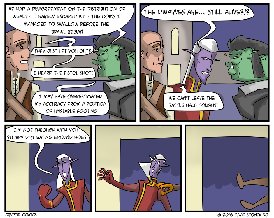 This group never really got along with anyone... including each other. So, I'm going to need a lot more insults for dwarves, humans, elves, dragonborn, etc. So if you have a favorite insult. Comment below, there's a decent chance I might use it.
