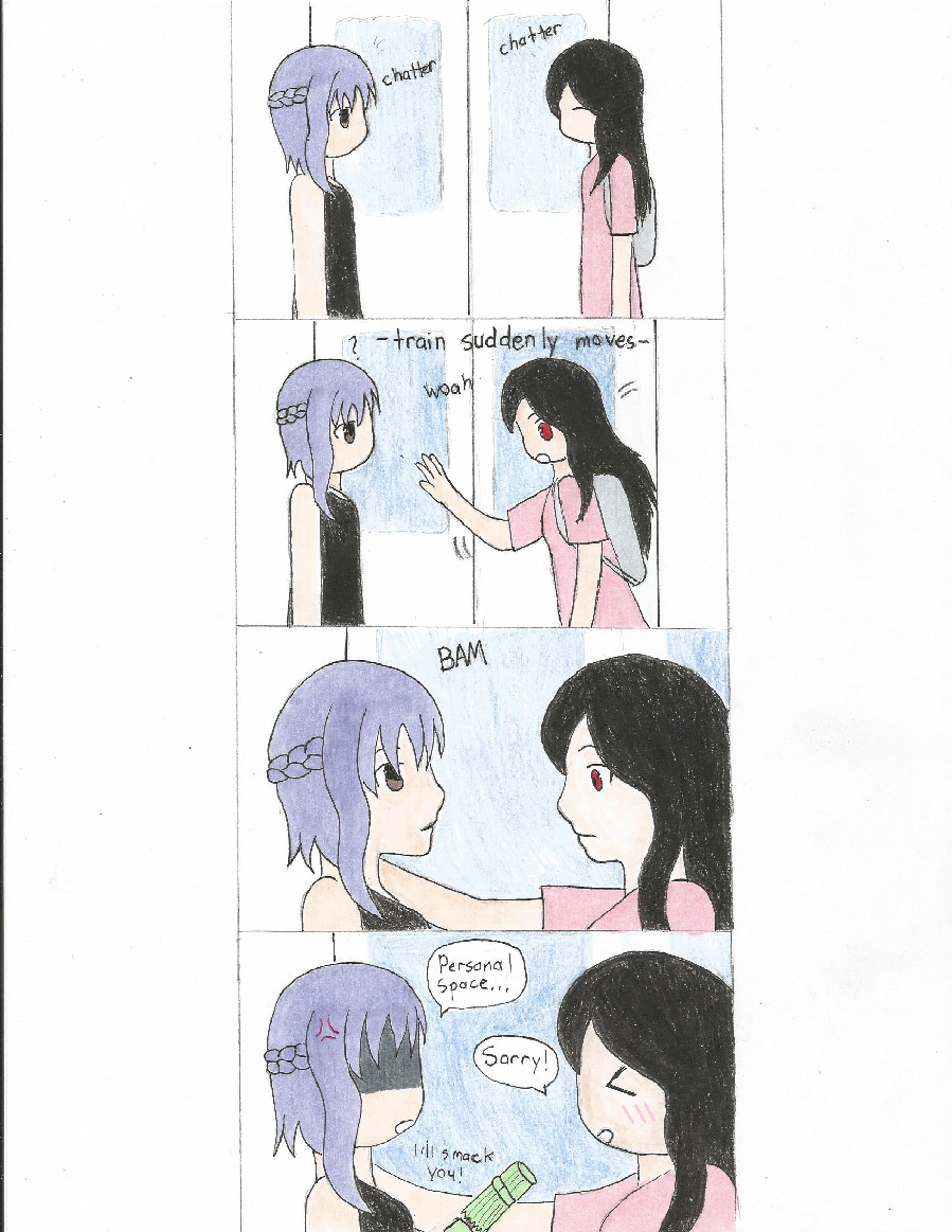 This happened last Monday xD I just found out this thing I'm doing is called Kabe-don, I didn't know this has a name. It was so awkward, I blame gravity and myself. I got laughed at by random people on the train xD My friend laughed it off.