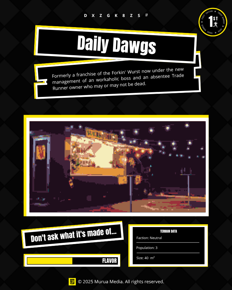 Amid ruins, chaos, and biopunk technology, the Trade Runners emerge, wandering merchants hauling goods, secrets, and addictions for the Trader’s Guild and its corporate partners.