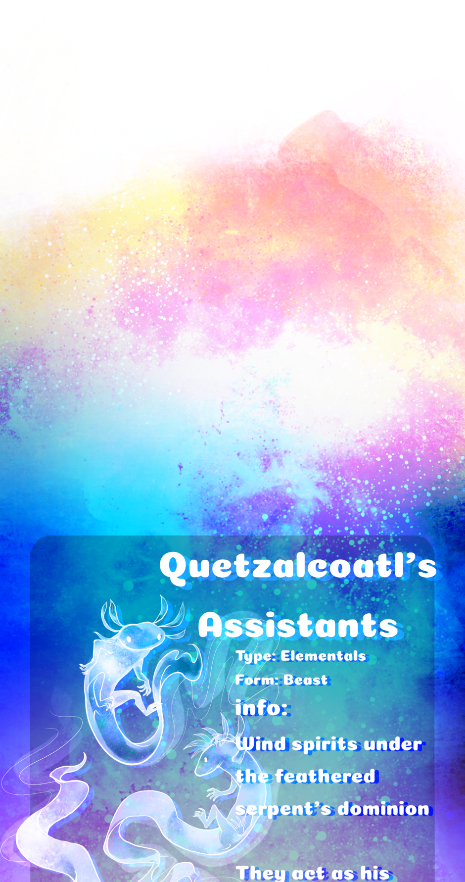 When Jay finds himself in an irreversible contract with Grand Spirit of the wind, Quetzalcoatl, he is suddenly thrust into a world of ghosts, demons, monsters, and secret societies. Making allies along the way, he must find a way to reunite with his lost mother while dismantling the hegemonic Order of the Ark that has controlled the boundaries between the magical and the mundane for centuries. - Updates every other Friday!