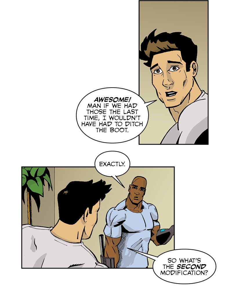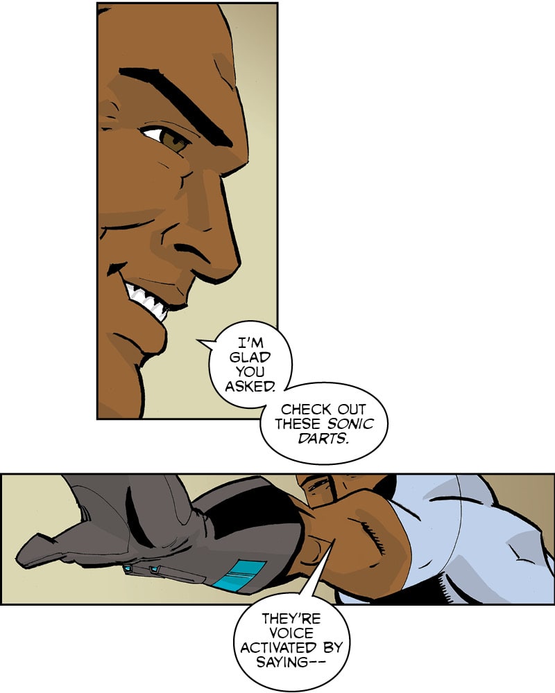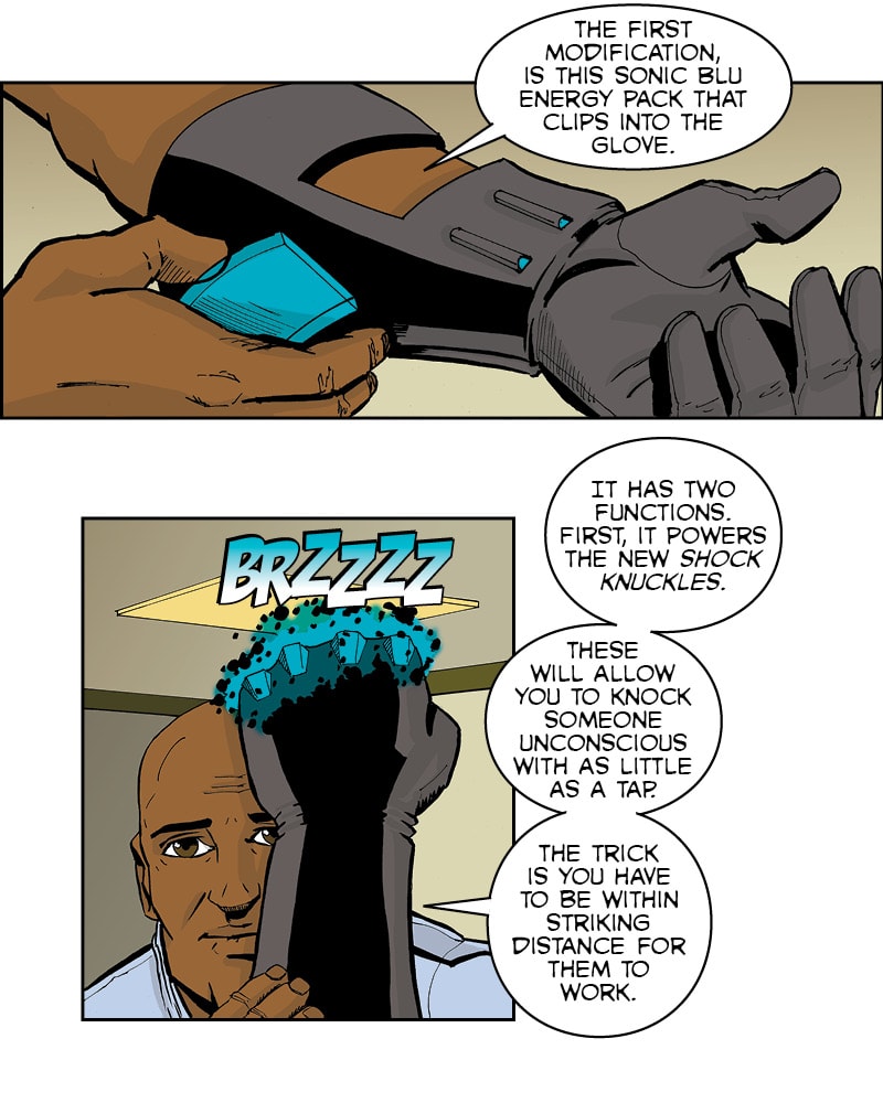 Terrence shows Floyd some new tech.
