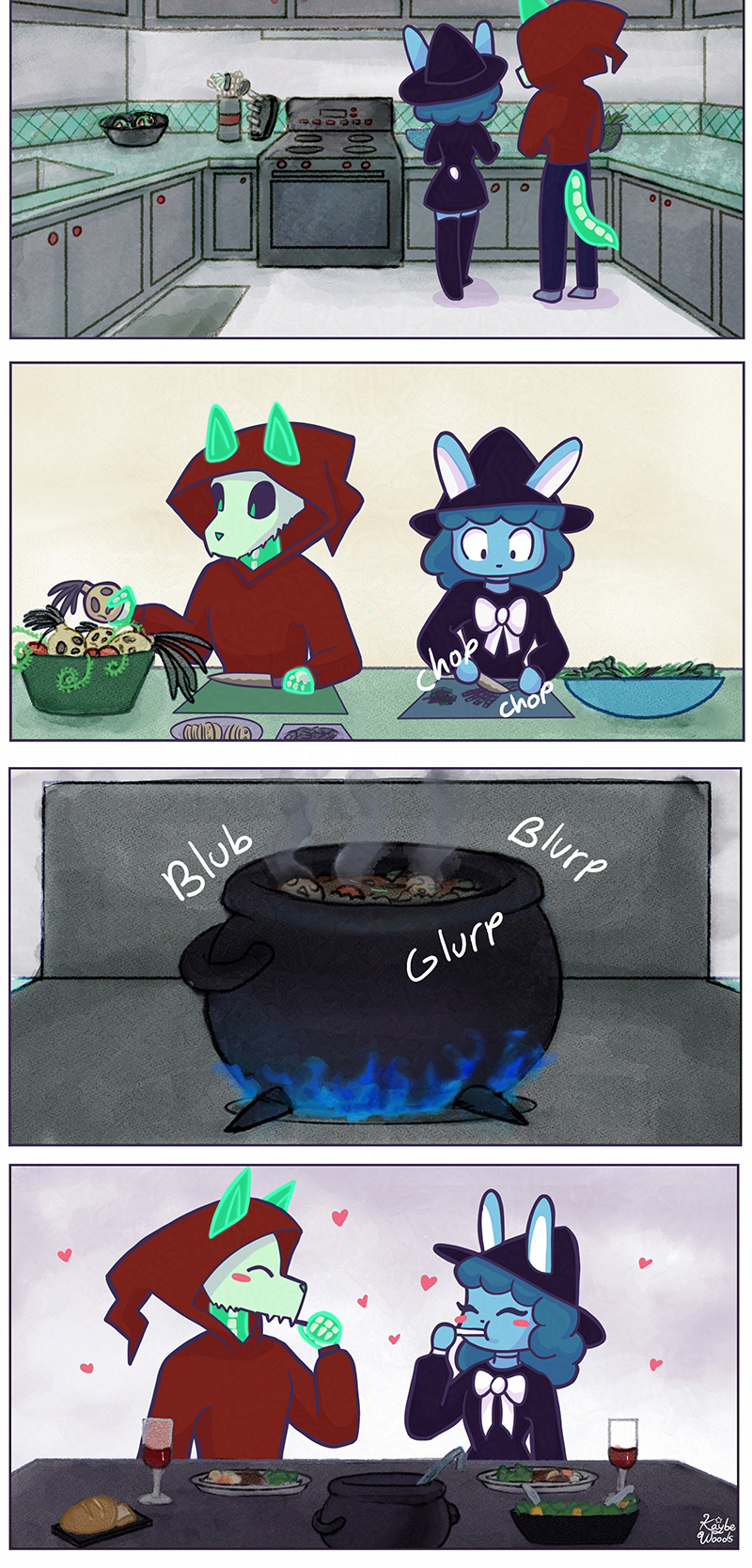 Bunny is a bubbly and optimistic witch who loves creating art. Ghost is a down to earth spirit who has brains and brawn. Among their similarities they found love blossoming between them. Ghost keeping Bunny grounded and Bunny showing vitality to Ghost, every day is a little lesson in love, laughter, and balance.