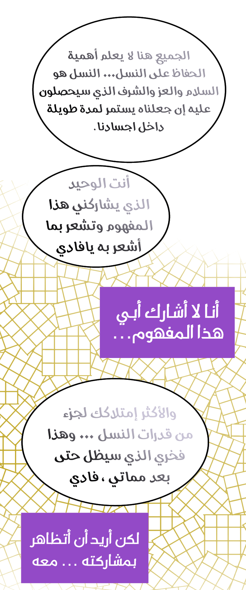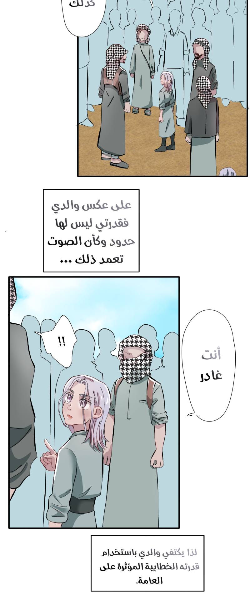 المرة الثانية اللي أقرأ فيها الفصل، لكن أول مرة أفهم كل شيء....توجع قلبي على فادي، العقيدة لما تفرض على طفل وتقمع براءته هي الأسوأ...هذا غير كونها عقيدة متشبعة استعلاء وكبر ايش رح تغذي فيه...🥹💔