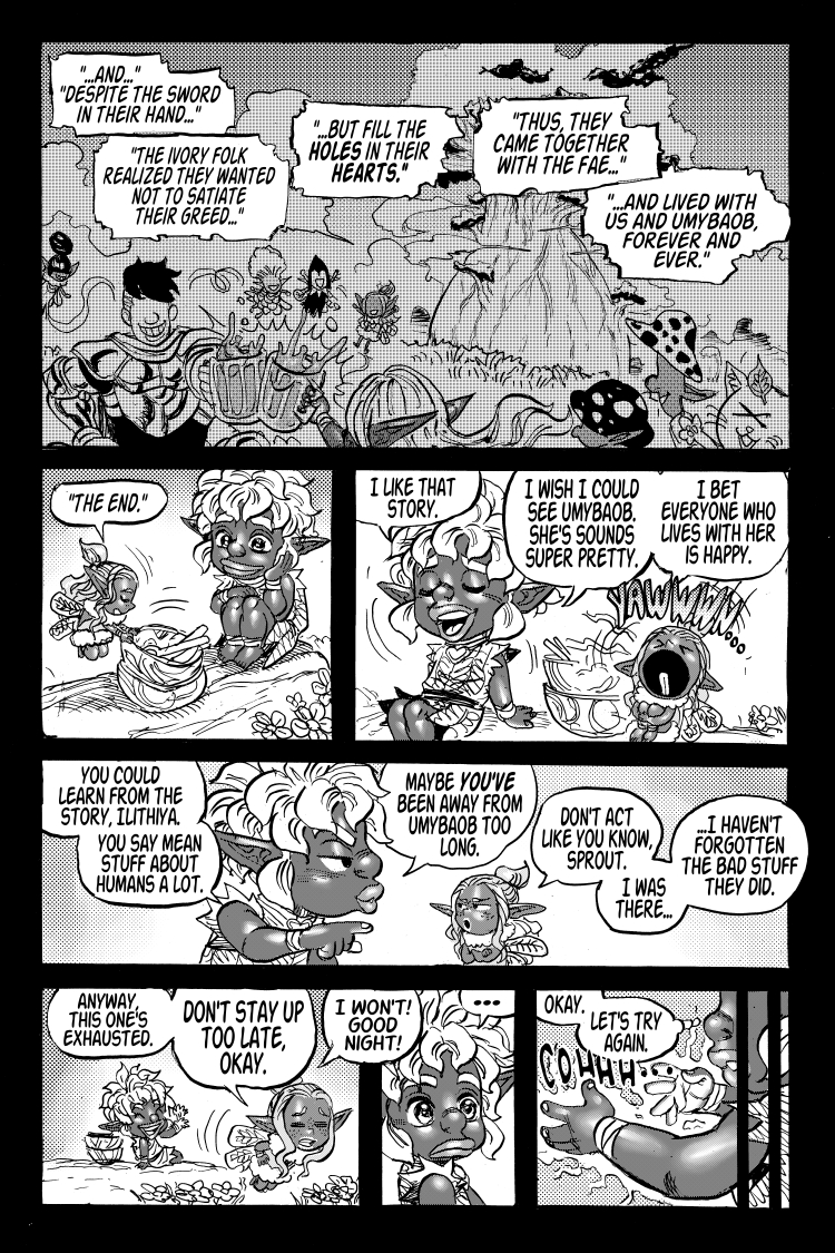 As a child, Freesia was told the story of the world tree Umybaob, and that strife could be overcome with love. However, Ilithiya knows the true nature of strife...