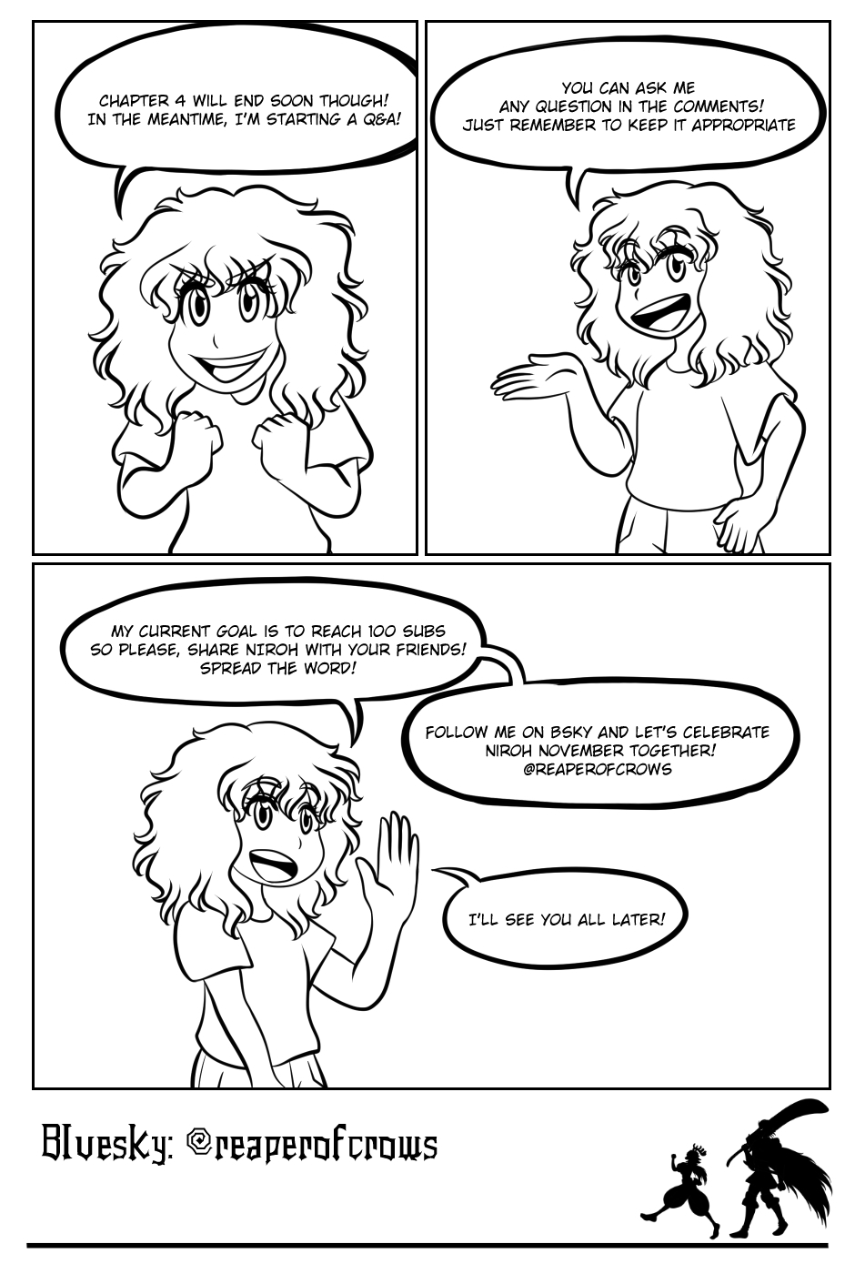 It's NIROH NOVEMBER! The 2nd Anniversary! Thanks for being here and reading my story! NIROH WILL RETURN I'll answer every question by the end of the month Don't forget to follow my Bluesky for updates and art :>