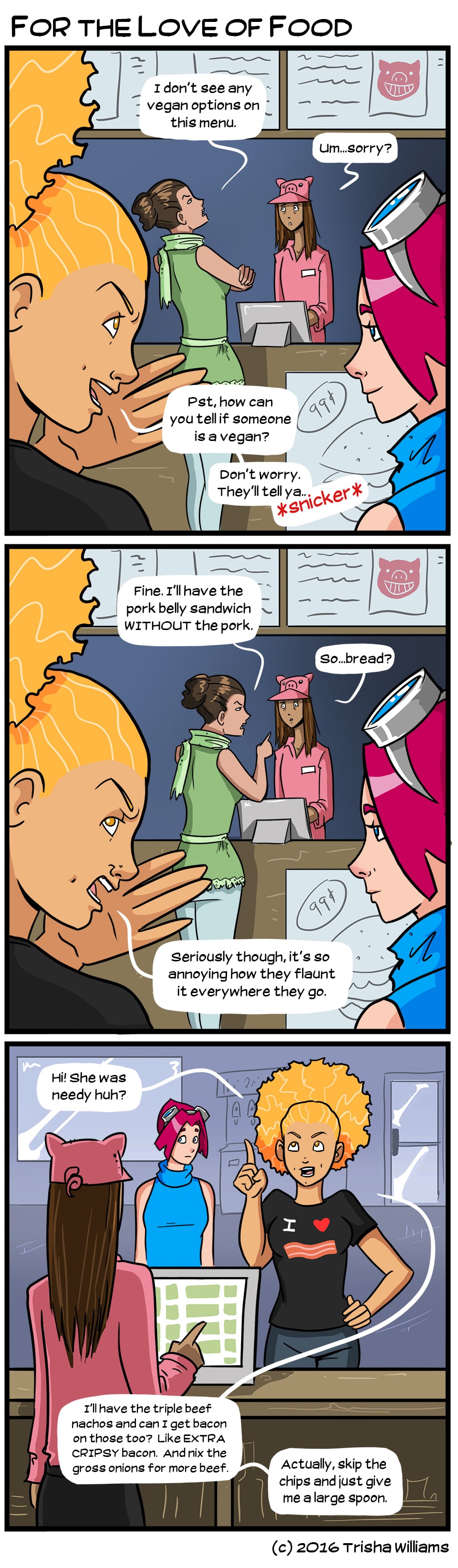 lololol accurate. I never believed vegans did this until I saw it with my own eyes at a restaurant smh i wanted to laugh so hard.