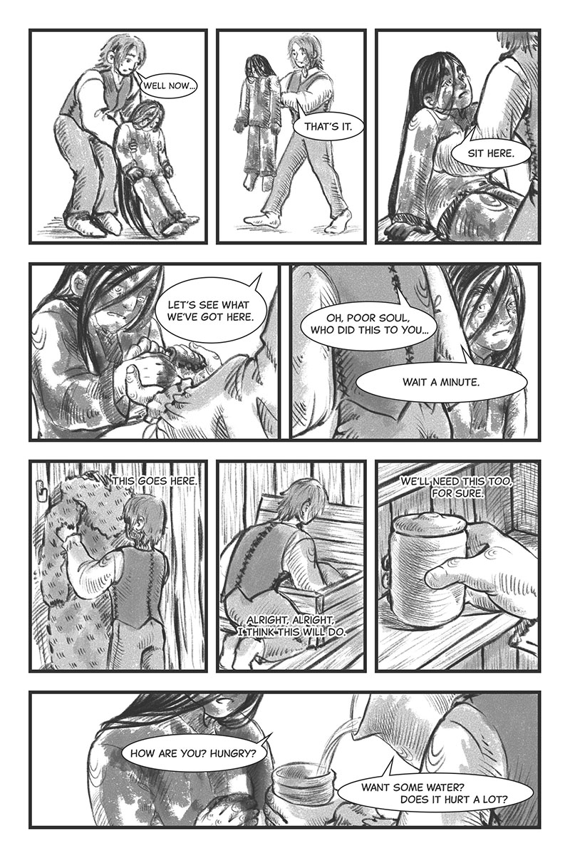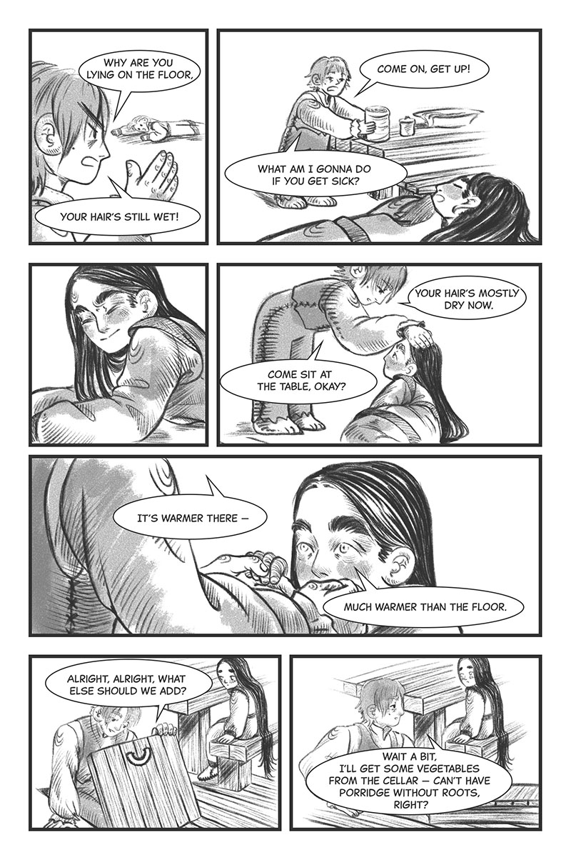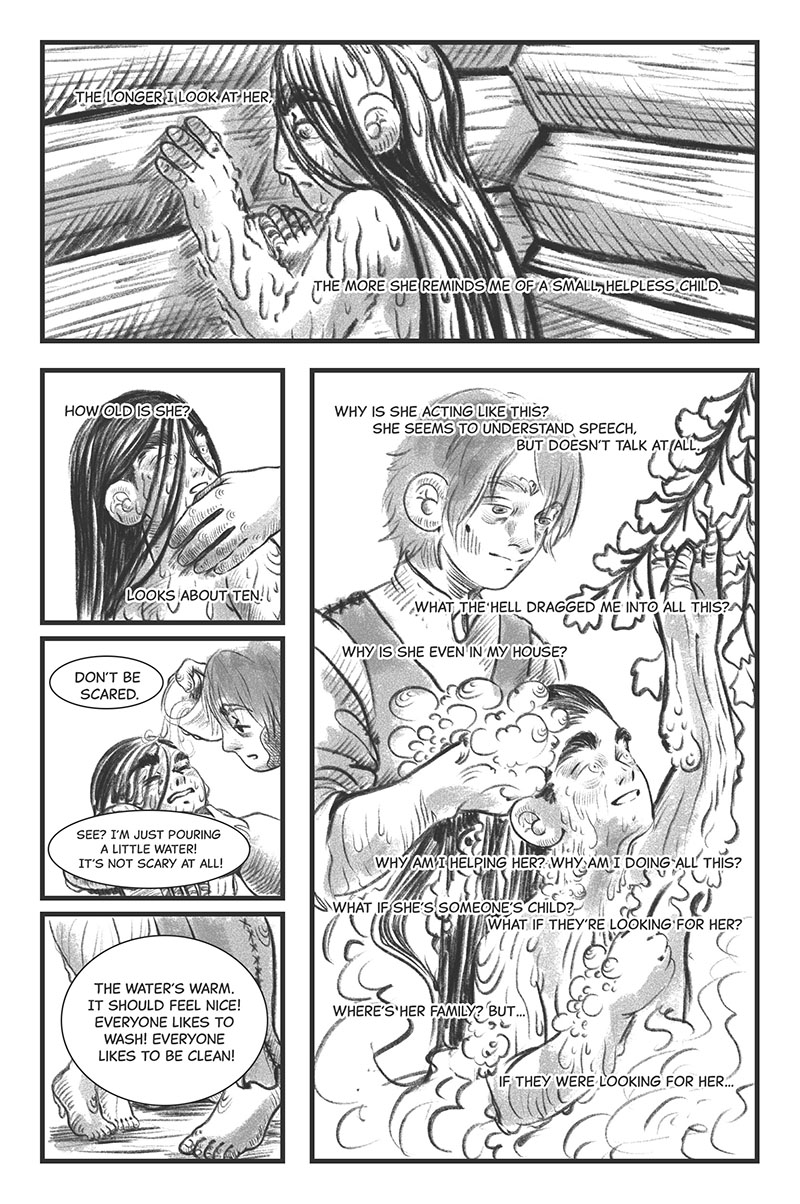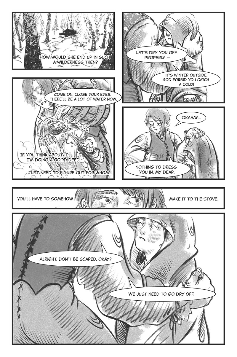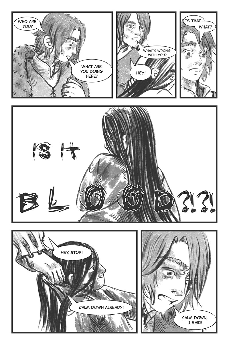 I love your art style because it feels that the human characters kind of look like trees. It is so interesting to read. The story itself reminds me of a dream.