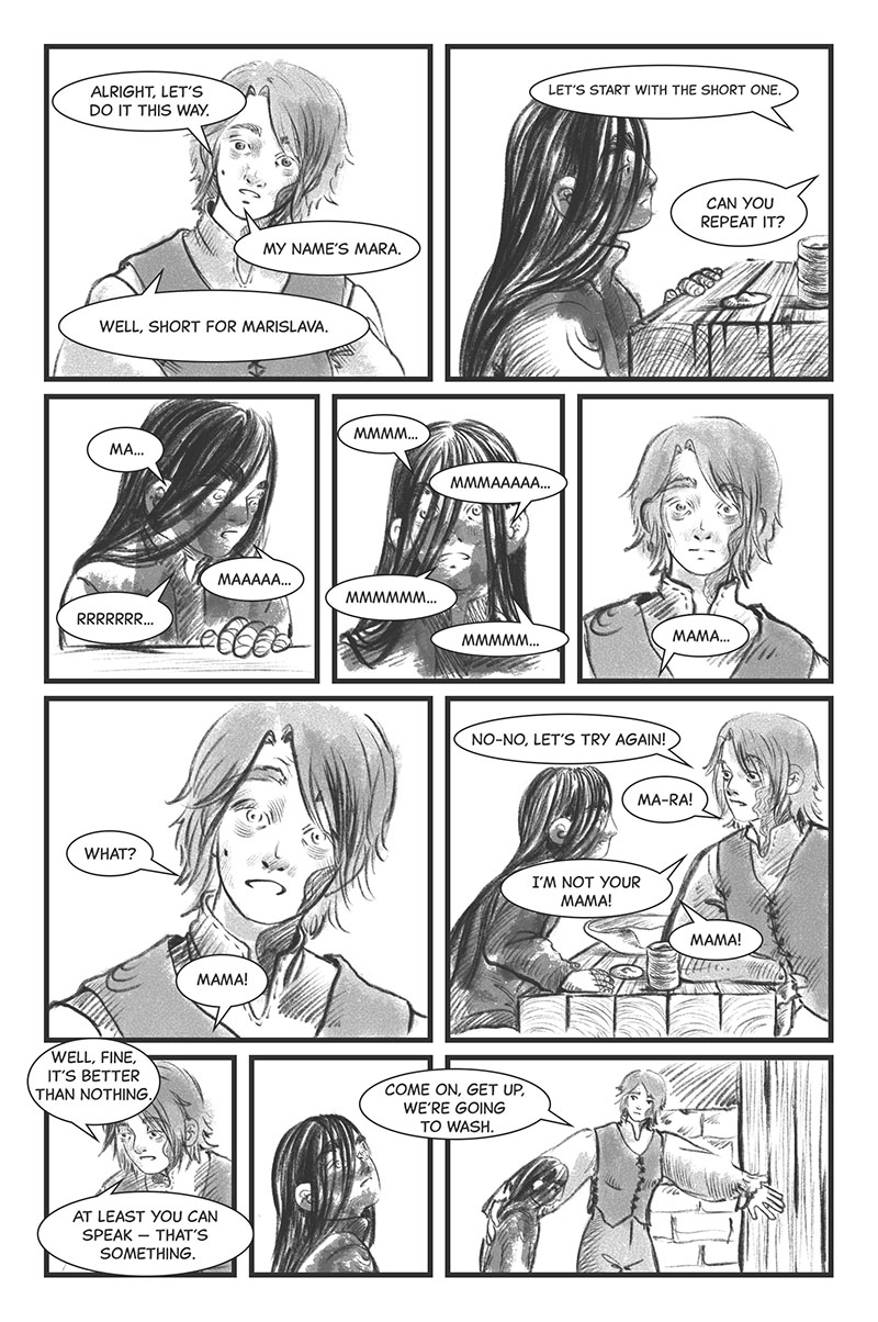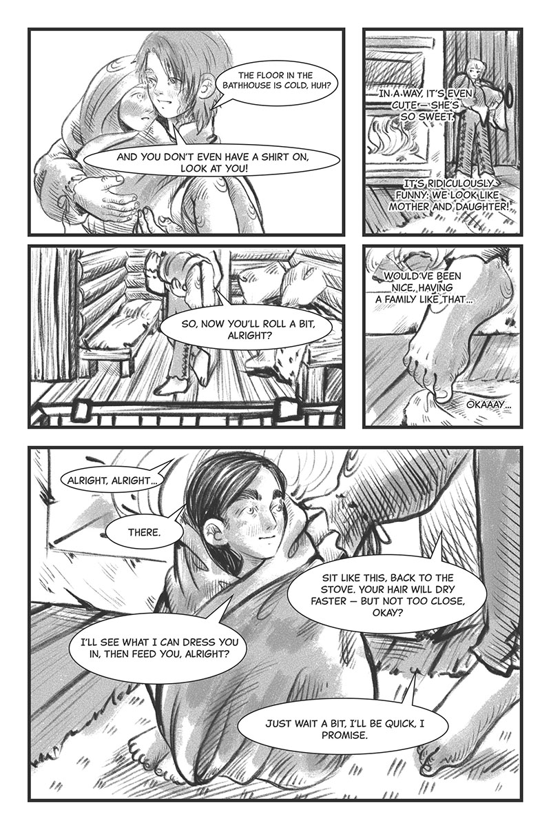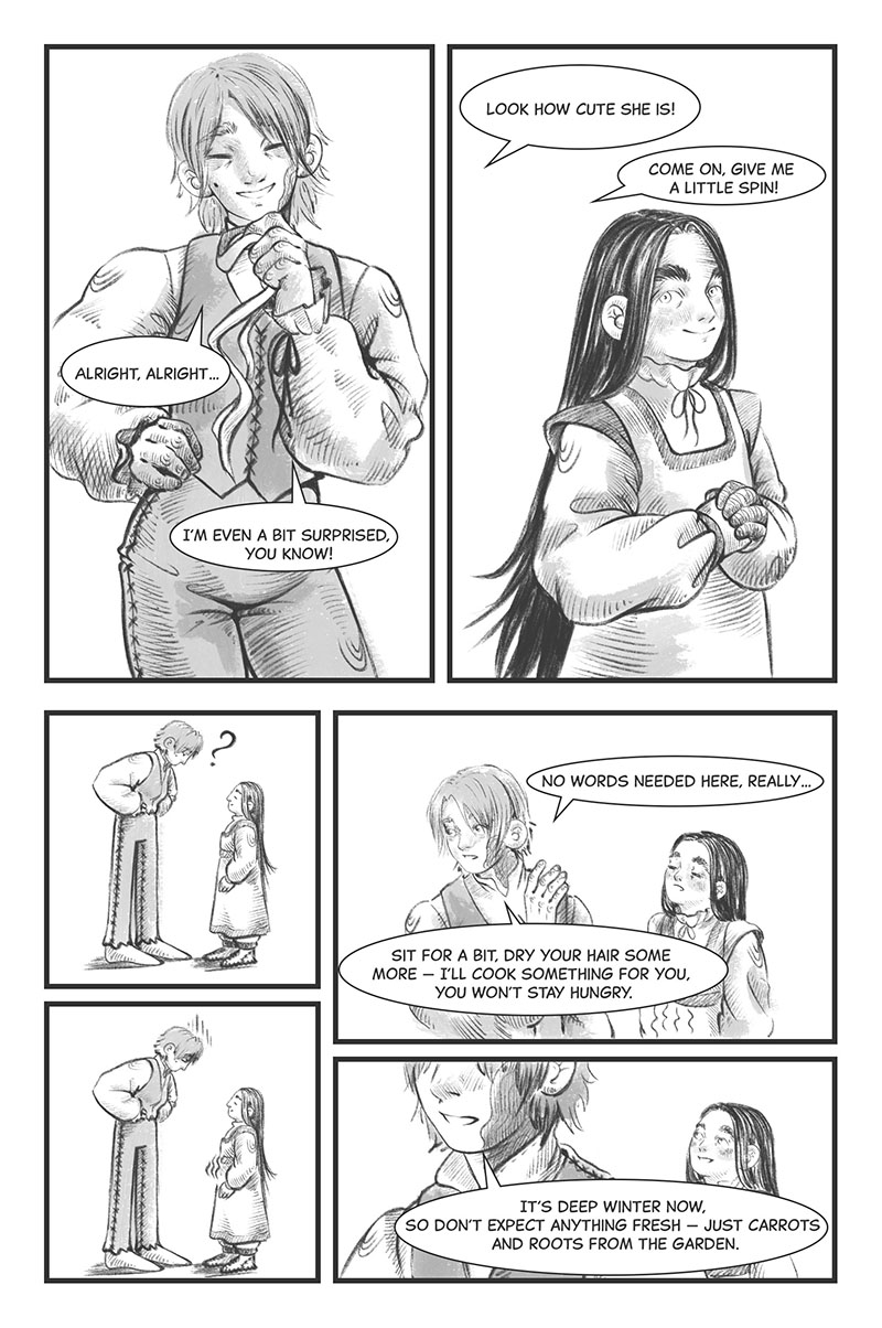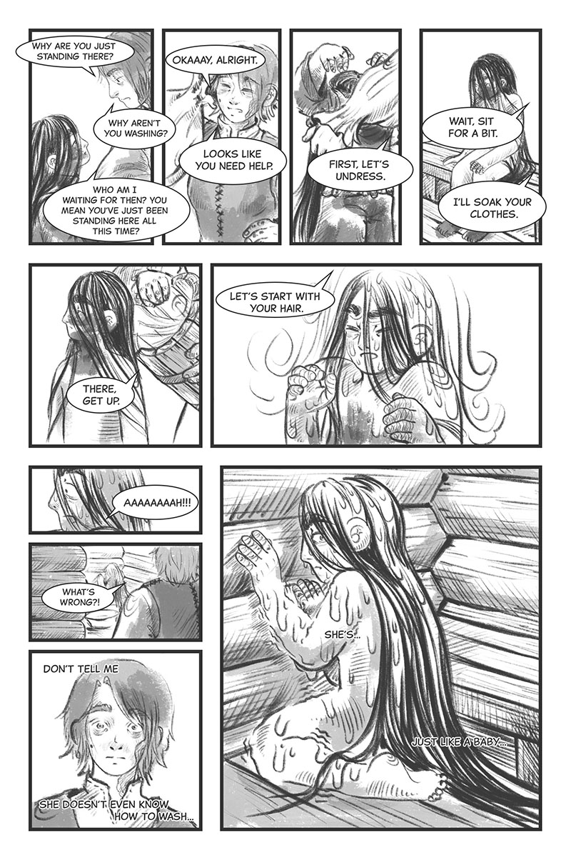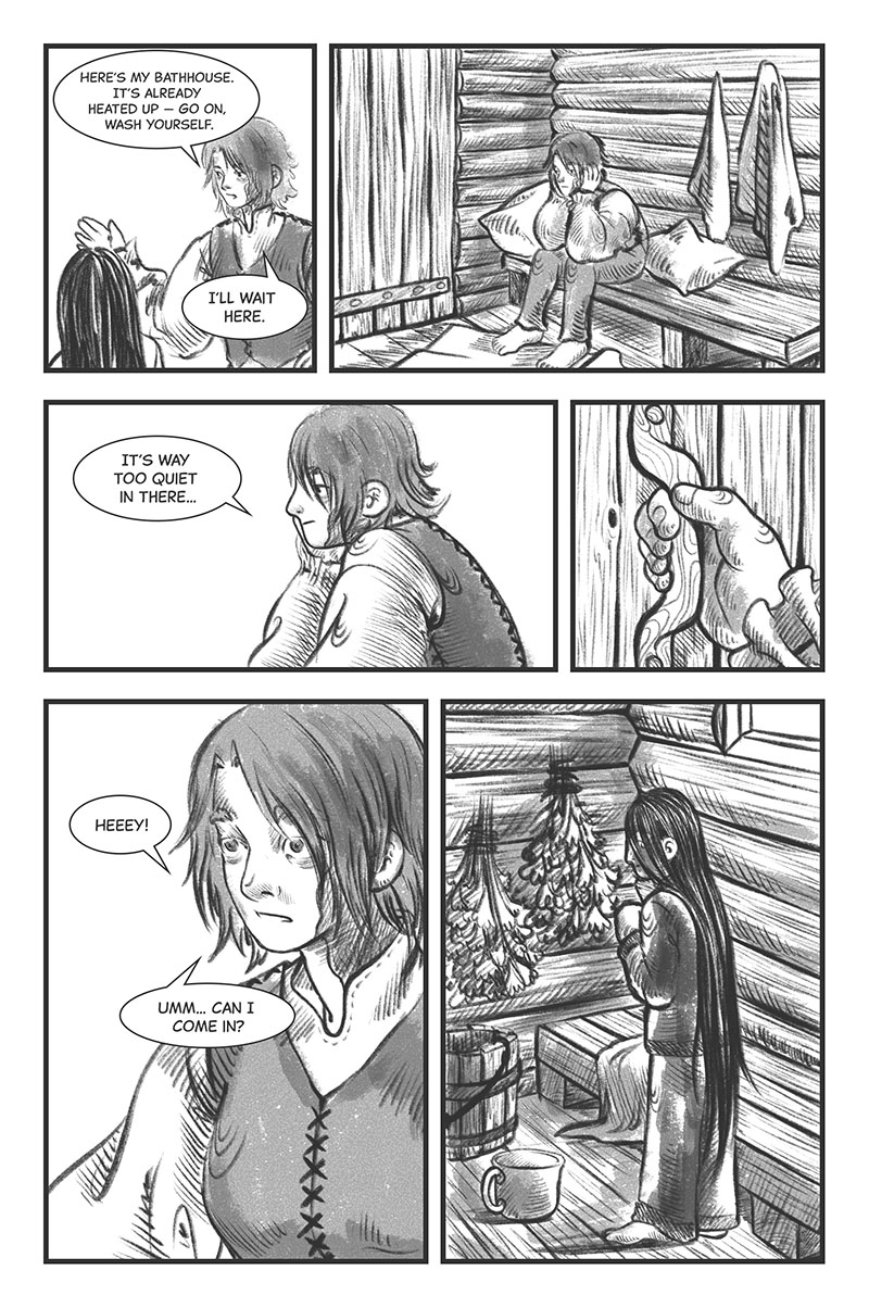 I love your art style because it feels that the human characters kind of look like trees. It is so interesting to read. The story itself reminds me of a dream.