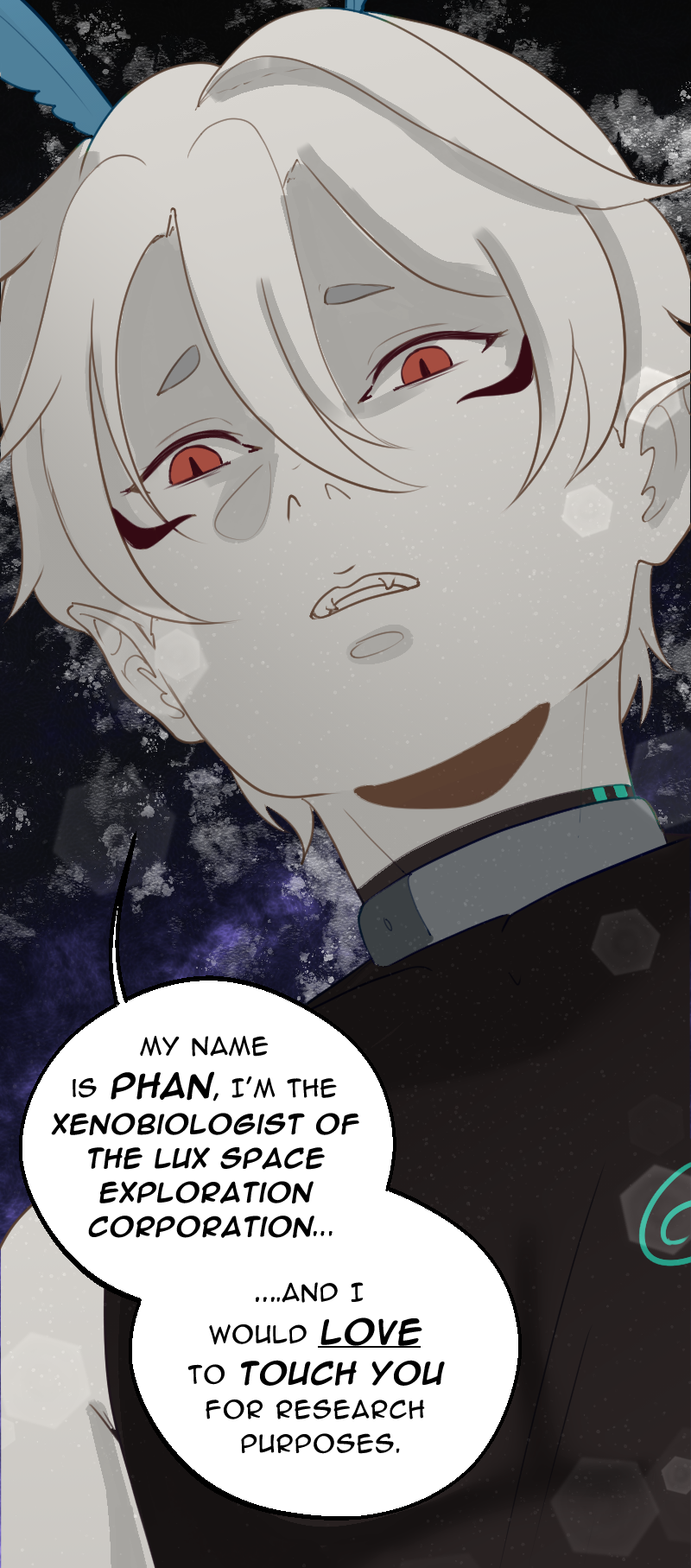 After being rescued from a laboratory in space, Nyx has to adapt in a new society where being “healthy” is a must. Luckily, Nyx has Kassian, The Captain of the space exploration team, along with his team, everyone tries to maintain each other ‘safe and healthy’