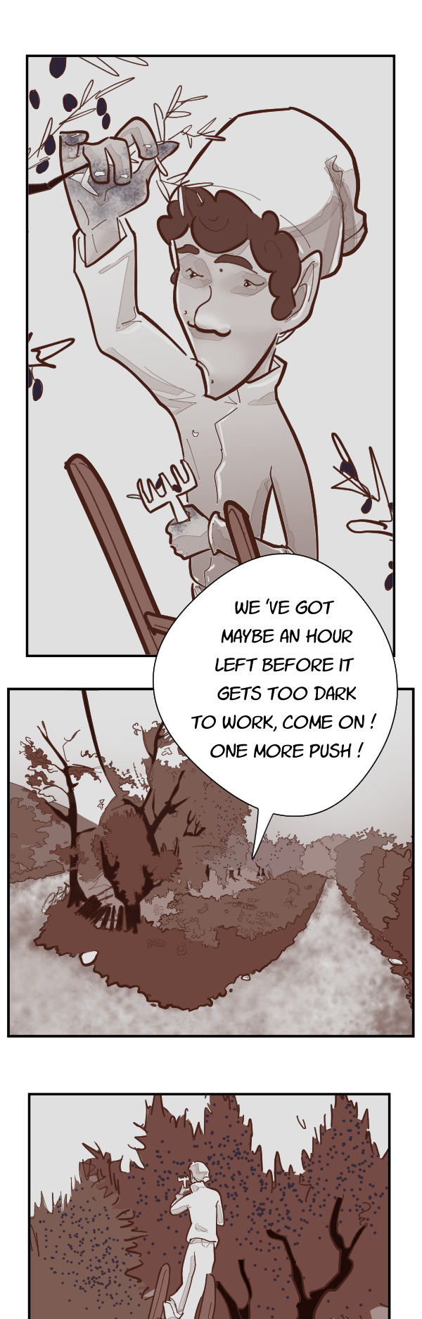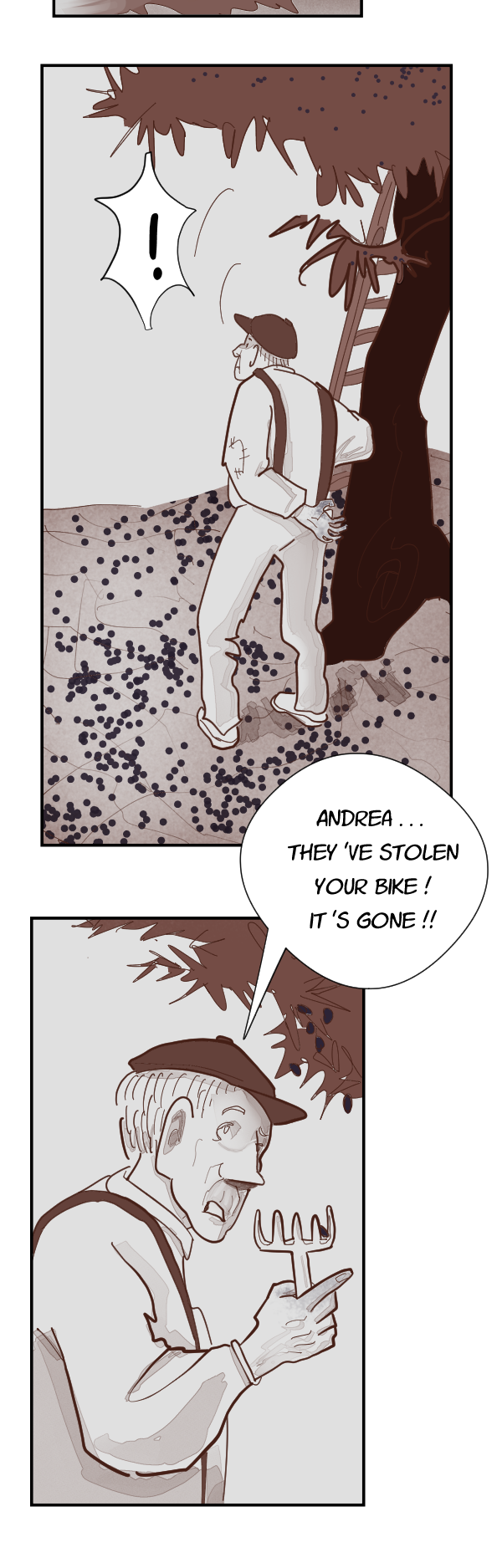 Hi! This chapter (embarrassingly transitional and easy to dislike) about the olive harvest just happens to fall during harvest season in my town. It wasn’t planned, but I actually love the coincidence. Poor Andrea! Poor bike!