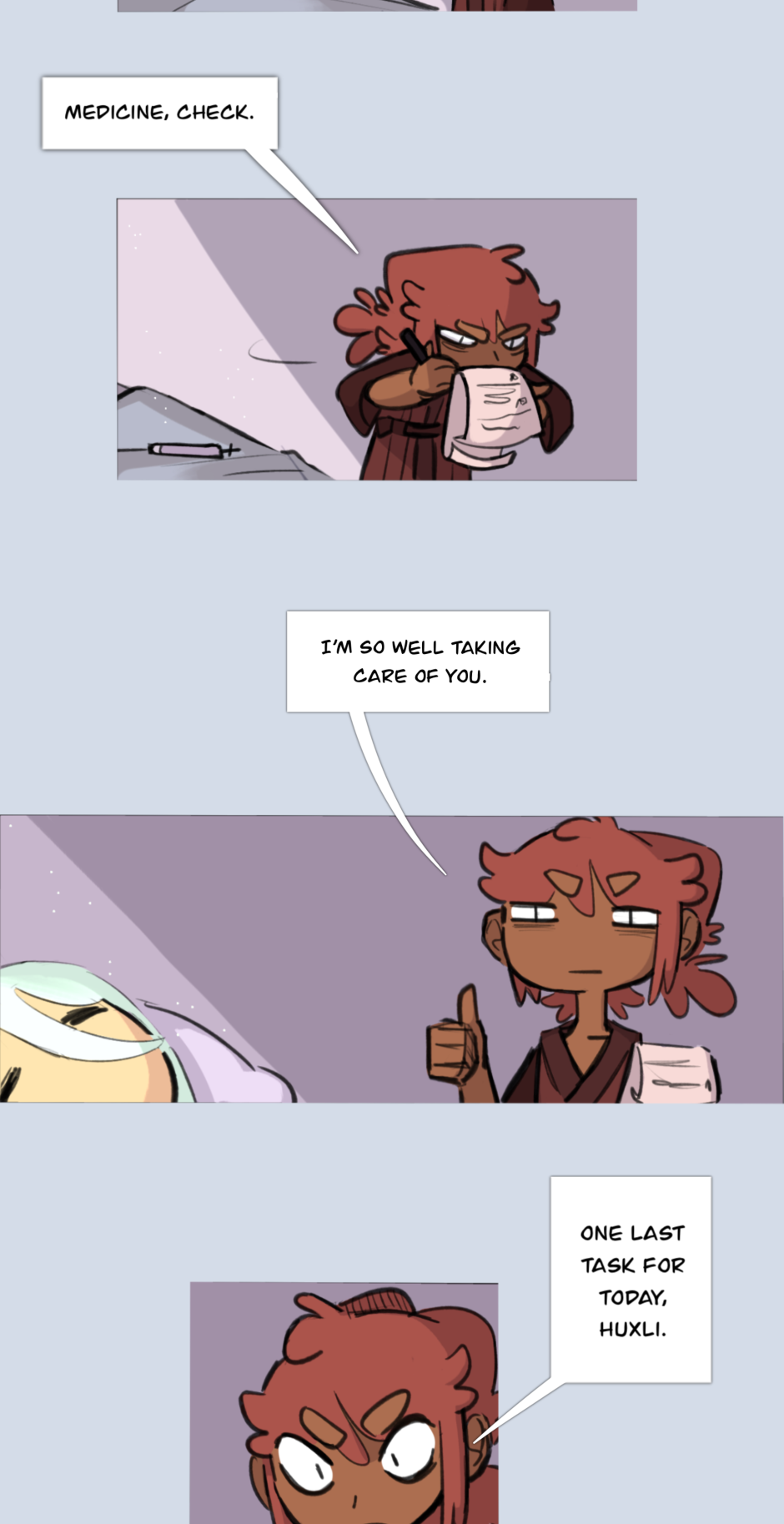 Dark supernatural fantasy about three brothers navigating the spiritual world full of deities, chained spirits, poisonous plants, visions and books that quite literally come to life, all while outrunning death "herself."