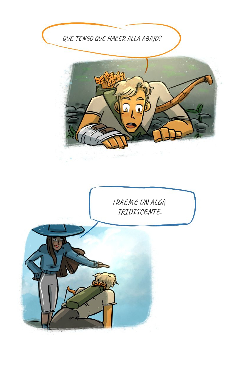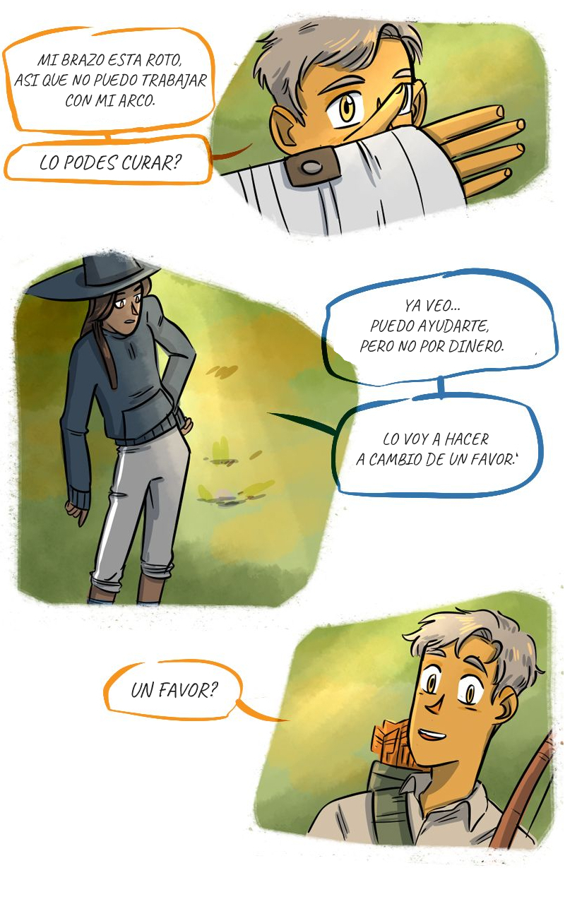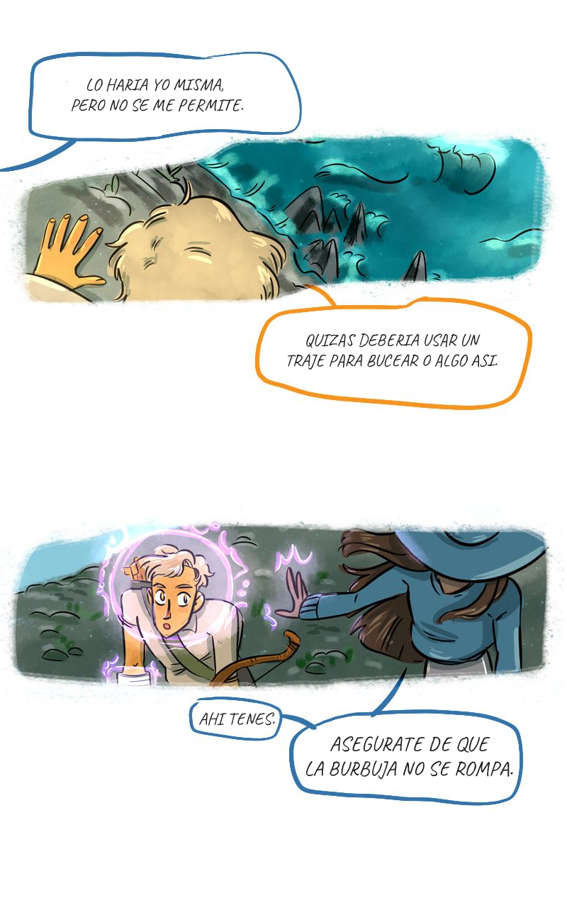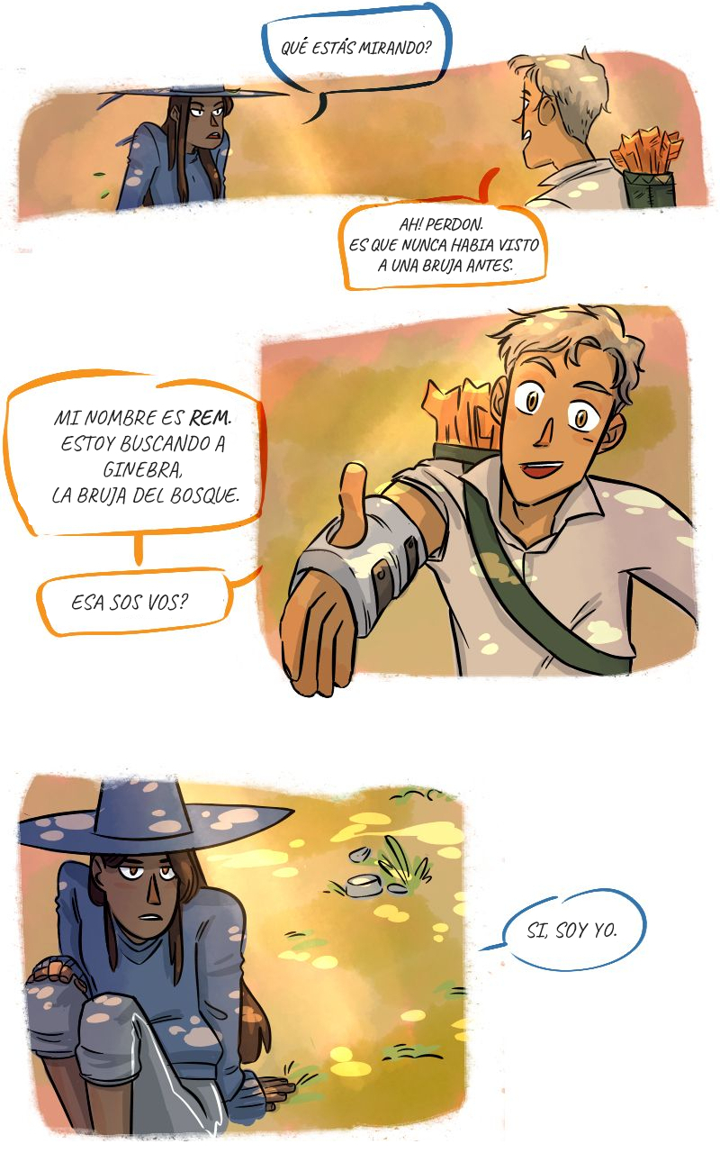 A veces ella tiene que ayudar con su magia a los arqueros scout del pueblo, Rem y Lynn.