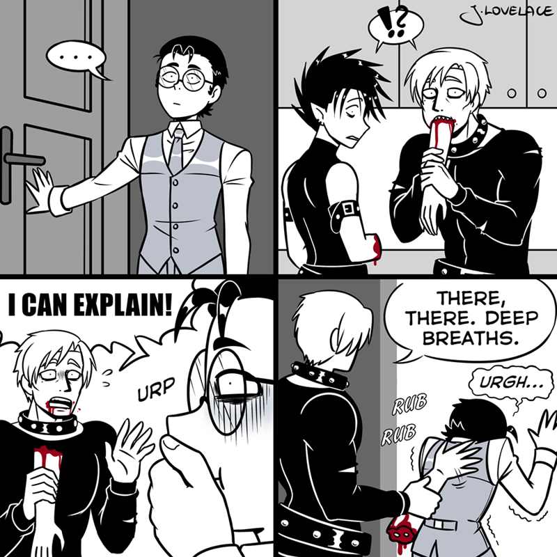 Warning for: dark humor, adult themes, cannibalism, teratophilia and body horror