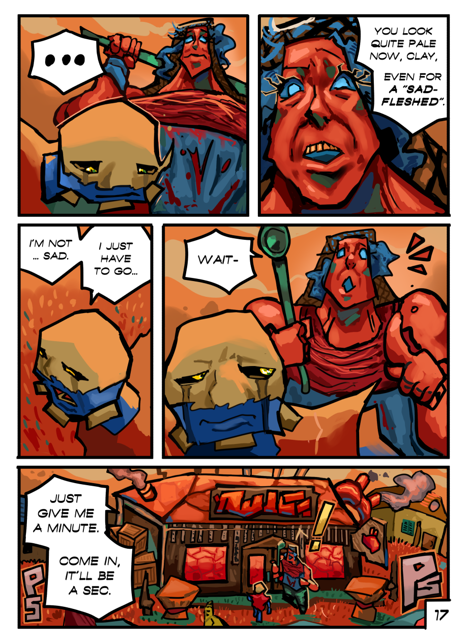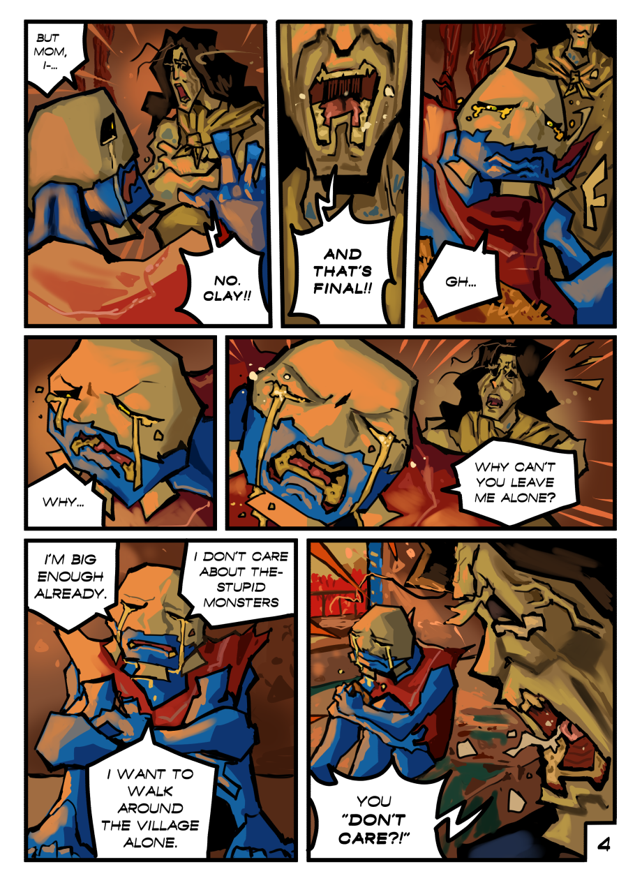 Clay is a young "Fleshed" inhabitant of the Carnal Village, a rural habitat breeding flesh-related offsprings. Although frail and undermined by his father, a proud Warrior of the Village; Clay's destiny lies within protecting his loved ones and the Village. Even if it means breaking his own body to attain such strength.