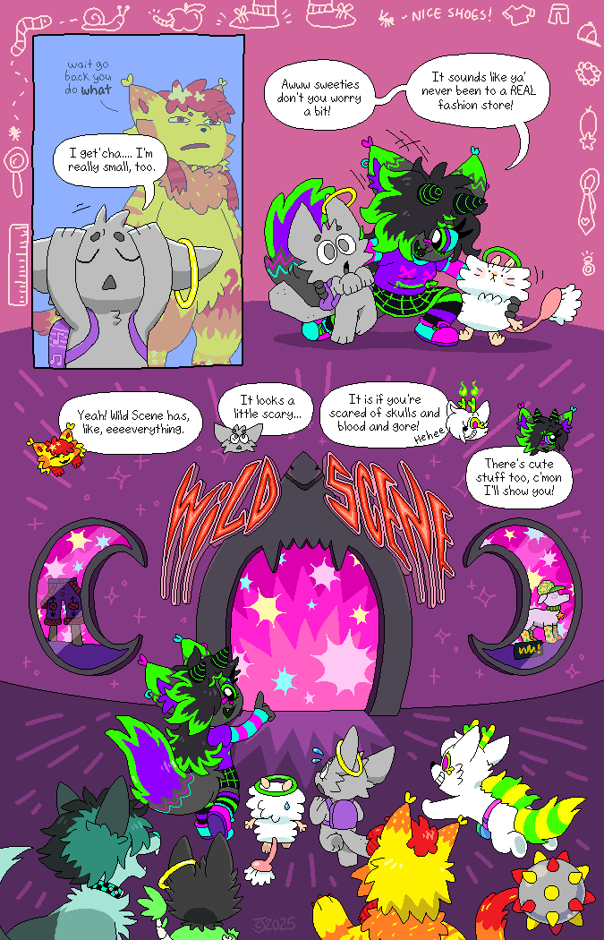 Most of the character designs were bought (adopted) from children on DeviantArt, resulting in a colorful cast of cats and dogs! The comic was made to be a love-letter to the creative minds of these kids. Credits to the original designers will be in the page description as they appear. The comic is all-ages.
