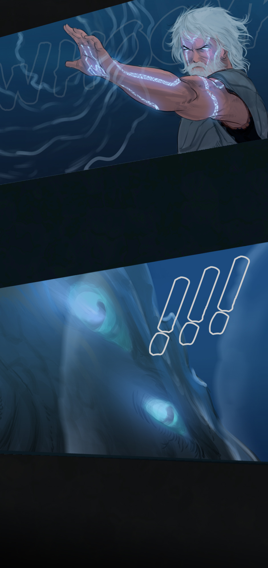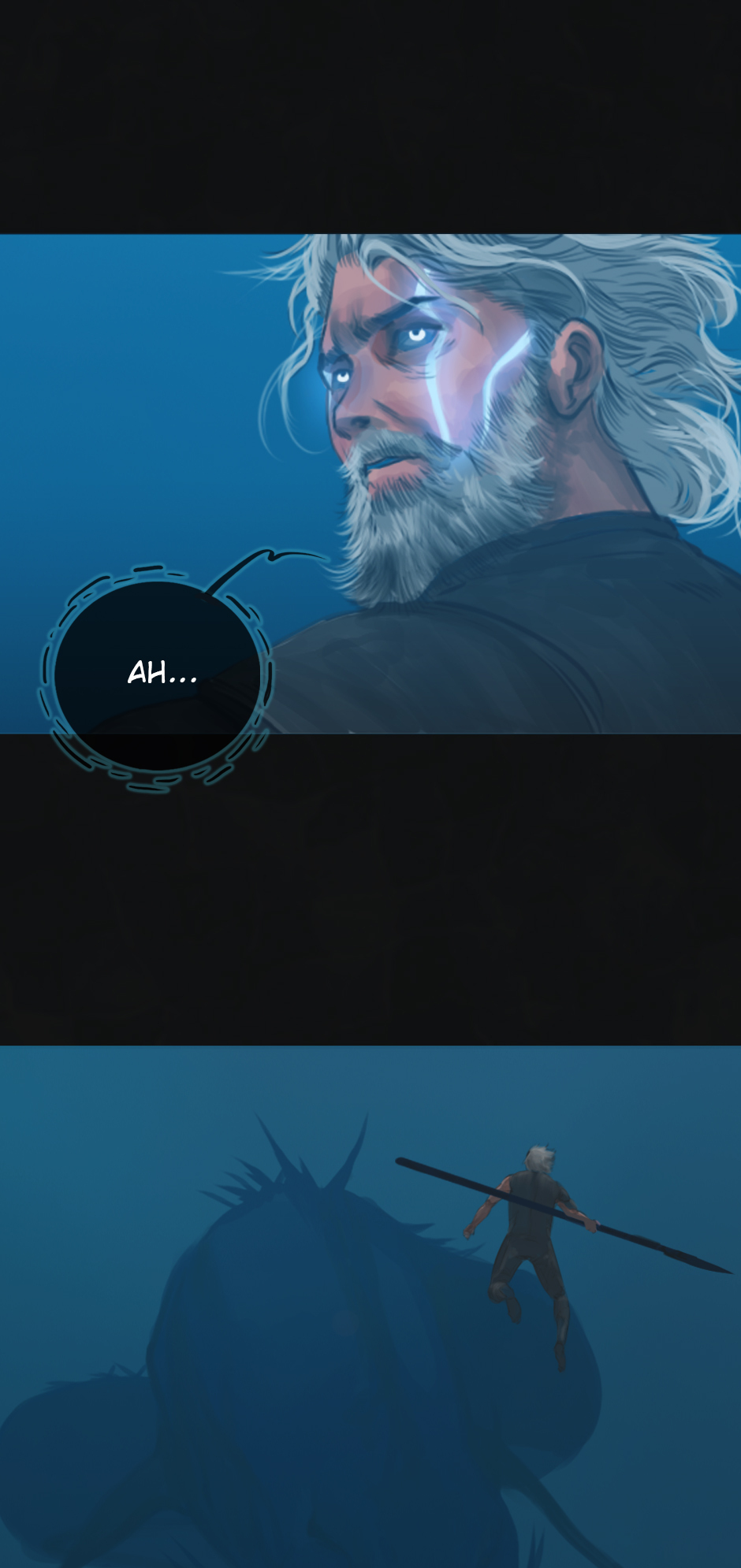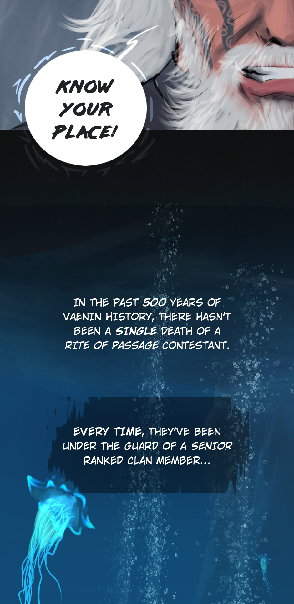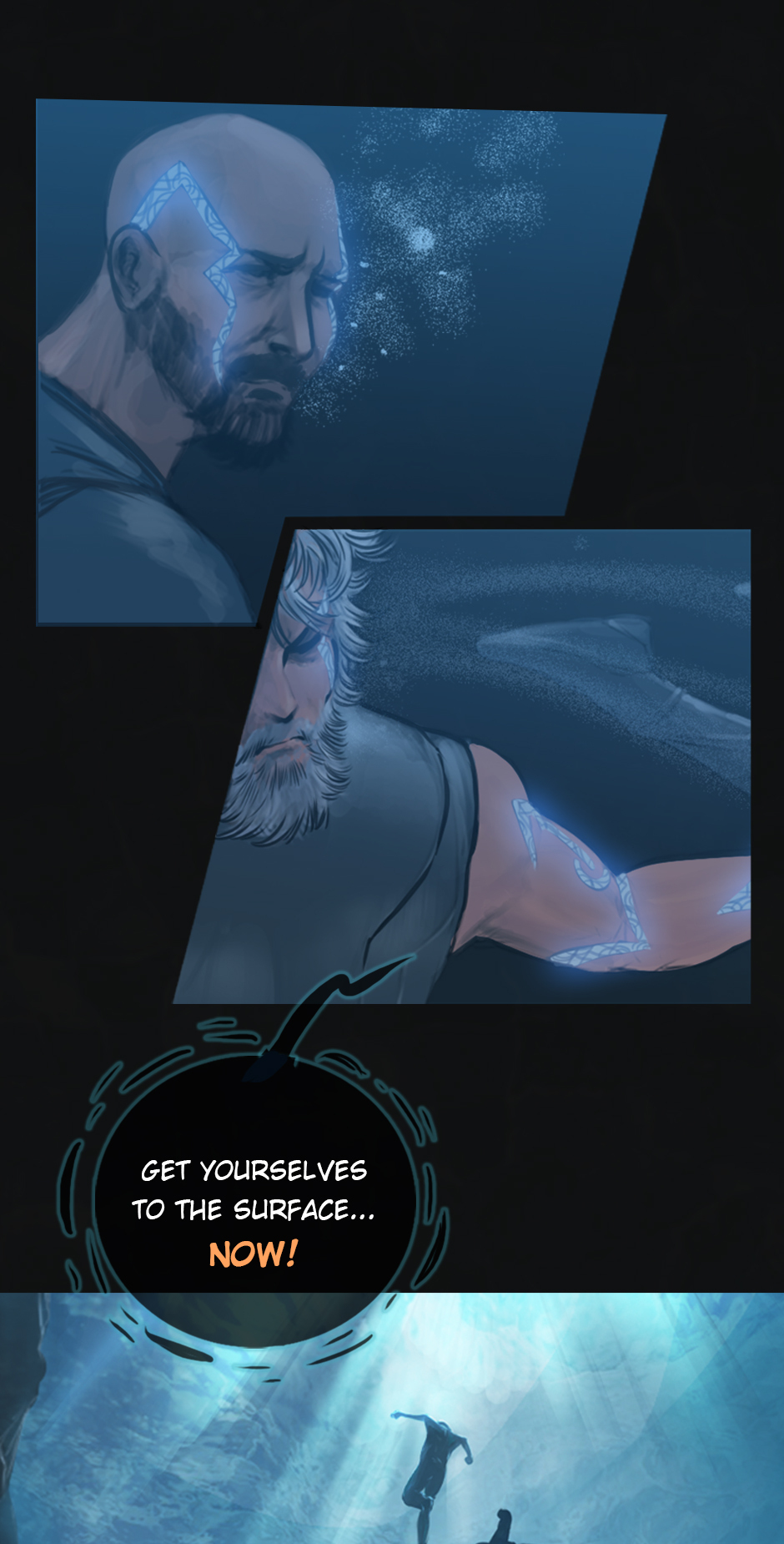 25 years ago. While the medics fought the virus on the shores of Erien, Kem'var, leader of an ancient hunter-warrior clan, dived into the ocean to rescue his people, and retrieve a sacred artifact. But he hadn't anticipated an encounter with the Vailgor, a massive deep sea titan.