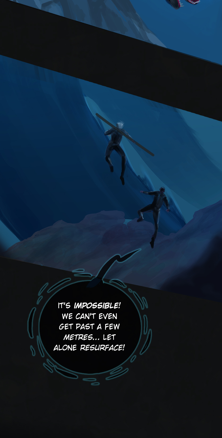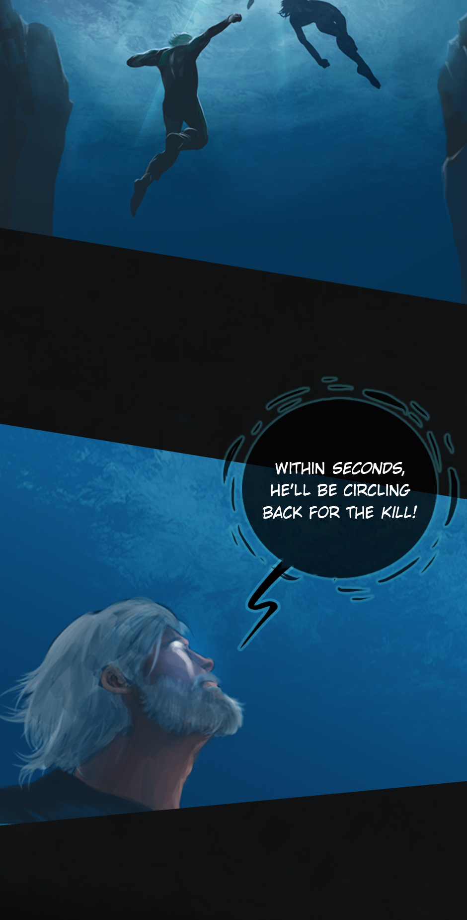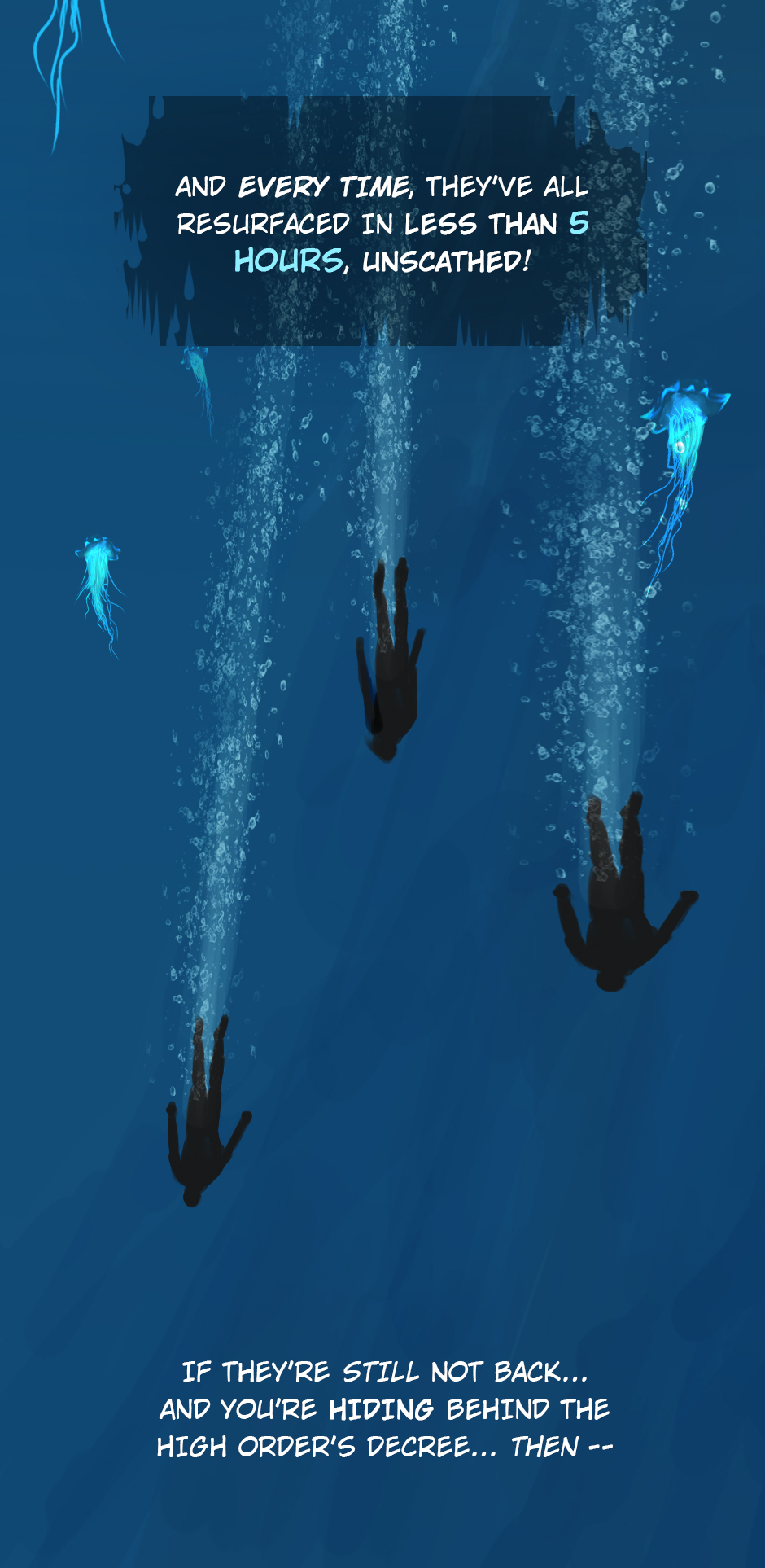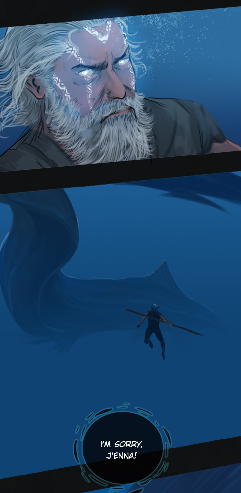25 years ago. While the medics fought the virus on the shores of Erien, Kem'var, leader of an ancient hunter-warrior clan, dived into the ocean to rescue his people, and retrieve a sacred artifact. But he hadn't anticipated an encounter with the Vailgor, a massive deep sea titan.