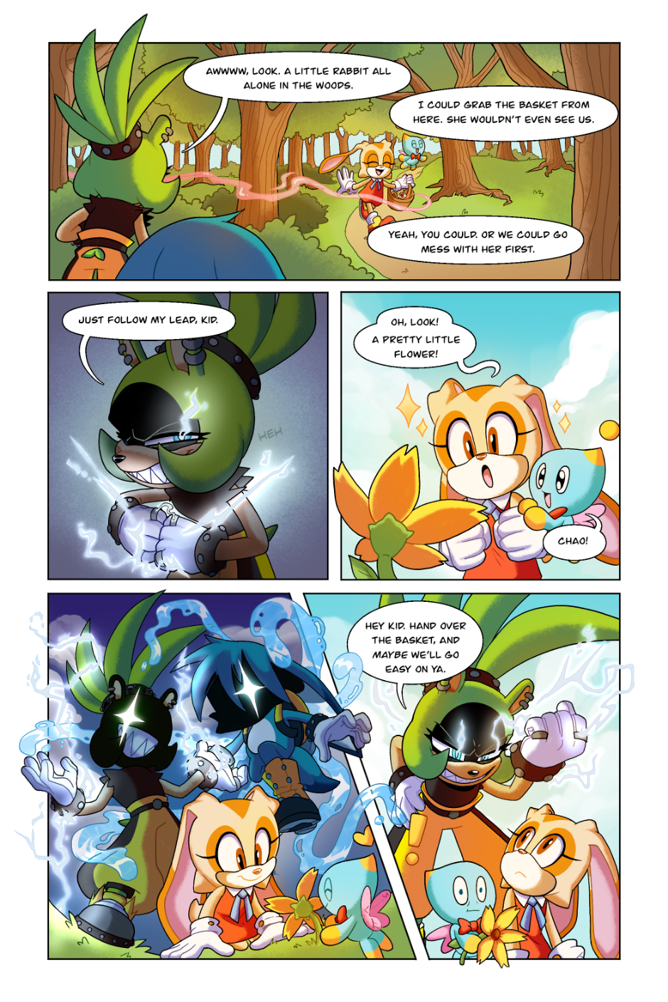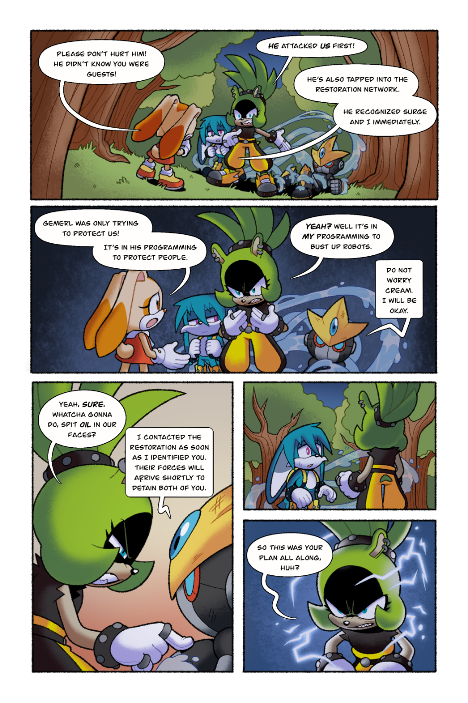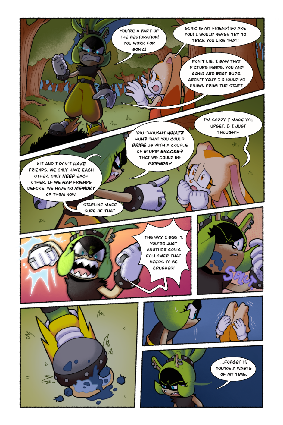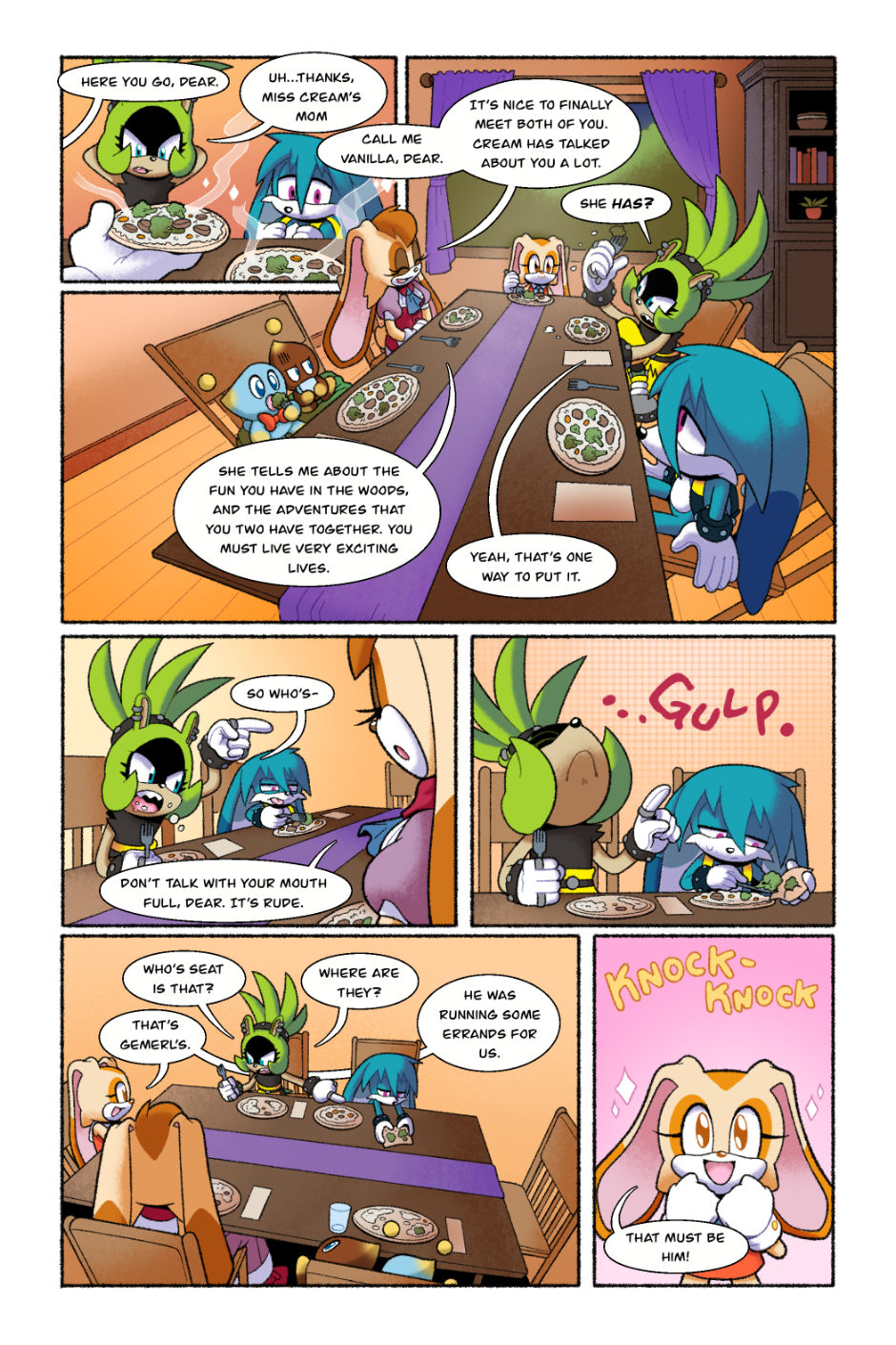 Omg!! I absolutely loved this comic! I really like Surge's character in this. This comic in particular stands out to me because it's one of the few I've seen that doesn't end on a high note. Also GEMERL REP?! I feel he's often left out of the Rabbit family and I get super excited whenever I see content of him! I'd like to know who's OC is that helping Gemerl to his feet? I love their design and want to know more about them!