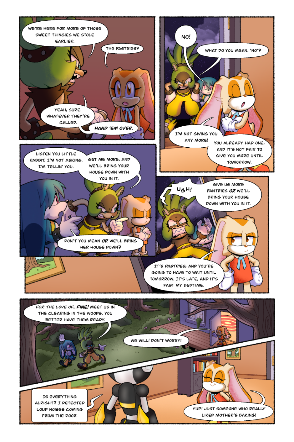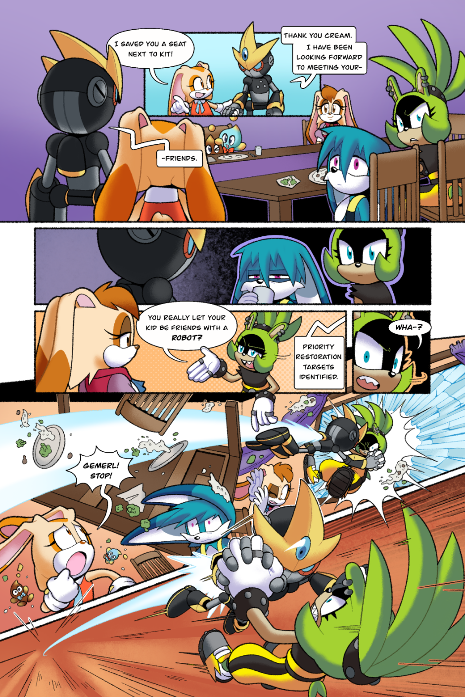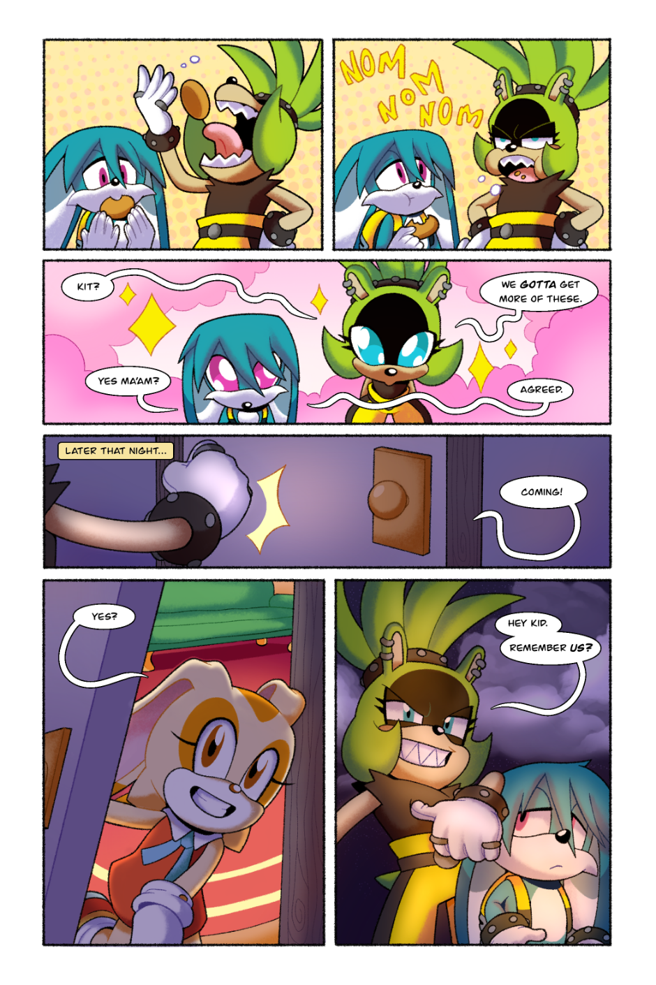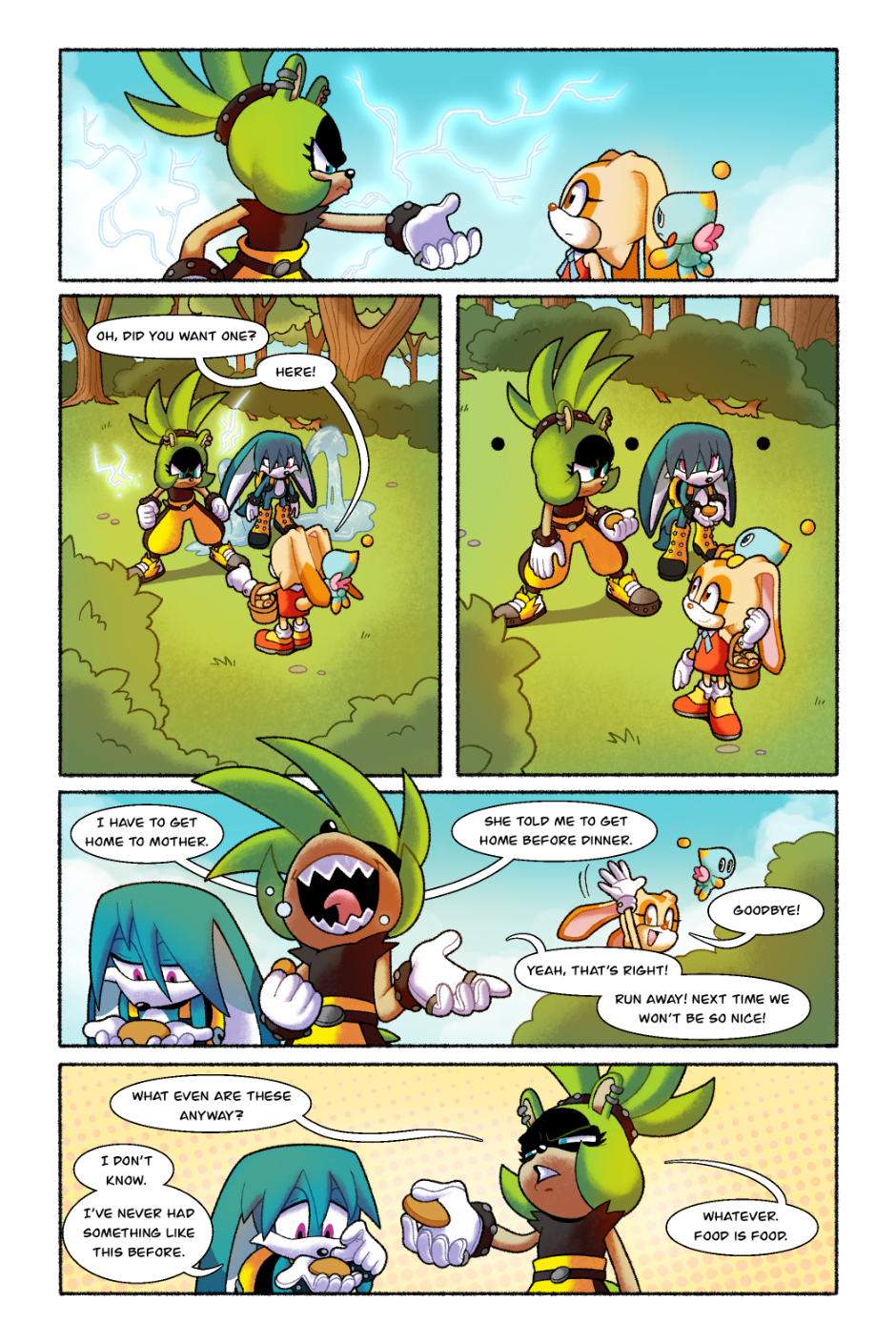 Omg!! I absolutely loved this comic! I really like Surge's character in this. This comic in particular stands out to me because it's one of the few I've seen that doesn't end on a high note. Also GEMERL REP?! I feel he's often left out of the Rabbit family and I get super excited whenever I see content of him! I'd like to know who's OC is that helping Gemerl to his feet? I love their design and want to know more about them!