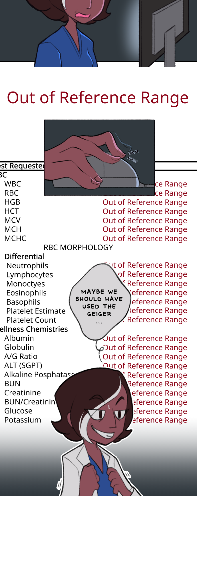 I know that's not what lab results look like, this is a comic about aliensss!