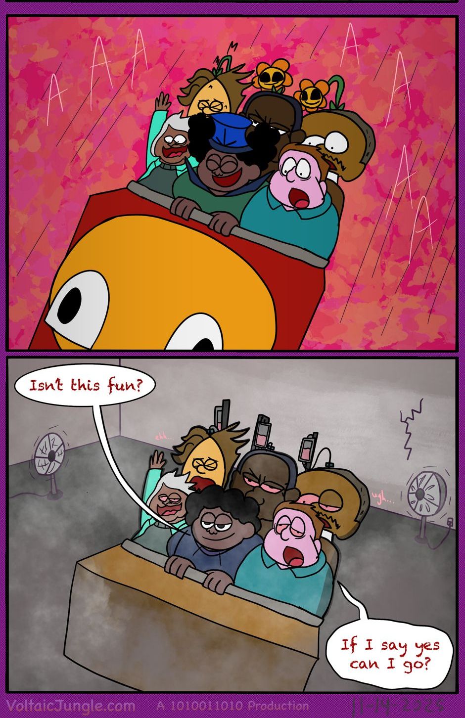 The hit early 2000’s cartoon continues churning out new adventures! Rebooted back to their iconic teenage selves, our six protagonists must cope with their renewed, seemingly endless existences. Watch these poor souls continue to entertain forever and ever and ever and ever and ever... Also available at www.voltaicjungle.com/free_falling