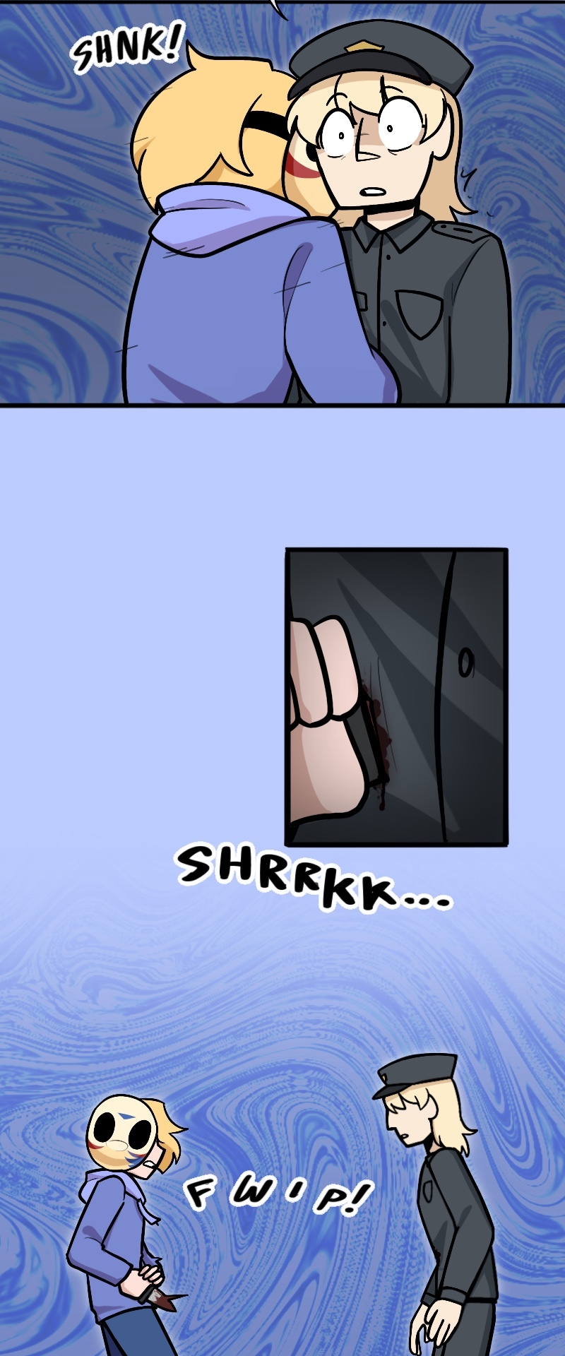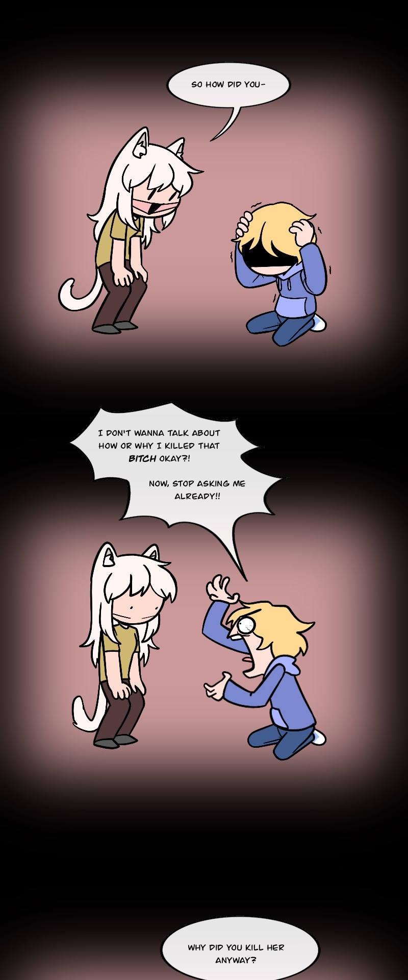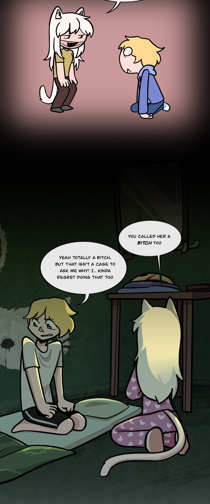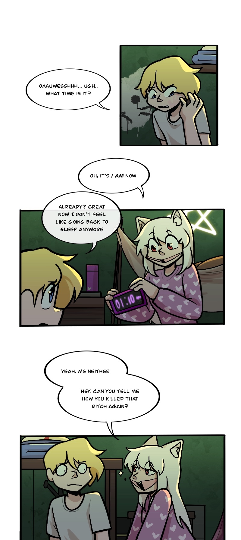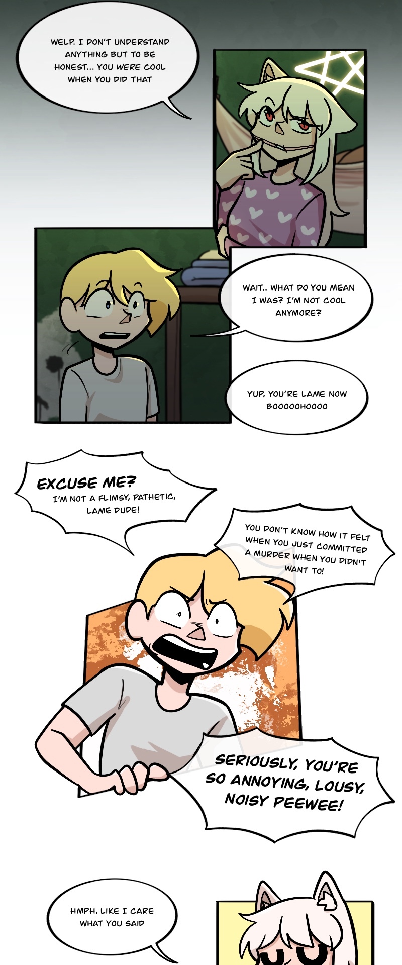 Alex, Kuchi, Hugo, and Leo, aren't heroes of this story or anything, just homeless folks, broken nobodies who try to survive in this messy society, crimes, cops, nonsense logic, who knows what could kill them(real life is horrible), maybe with illusion dark magic. "When pizzas aren't cold, there is always room for us"
