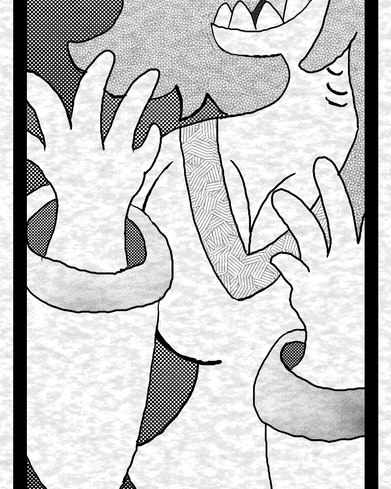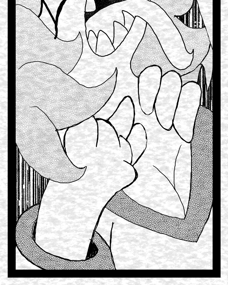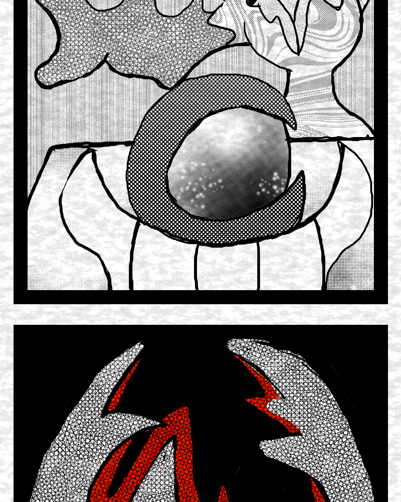 In a universe built upon the fragile geometry of Solaria (Order), the primordial force of Lacuna (Chaos) reawakens, forcing the inhabitants of the collapsing reality to choose between sterile perfection and the necessary, but painful, entropy of change. The Sorrow series is defined first and foremost by its overwhelming visual aesthetic: a monochromatic, highly contrasted world punctuated only by stark, volatile Red. The art style is a dense tapestry of Tangled forms—fluid, weeping, serpentine shapes representing the primordial Chaos—clashing violently with sharp, crystalline Geometric lines that embody restrictive Order. This visual duality is not merely decoration; it is the fundamental language of the universe. Every panel reinforces the central theme: life is the beautiful, agonizing space between total control and absolute dissolution. This story establishes that the entire universe is a ticking clock, designed by an imperfect form of Order and destined to fall apart because it lacks the necessary flow of Chaos. (Bi-Weekly Friday)