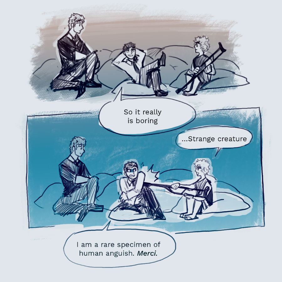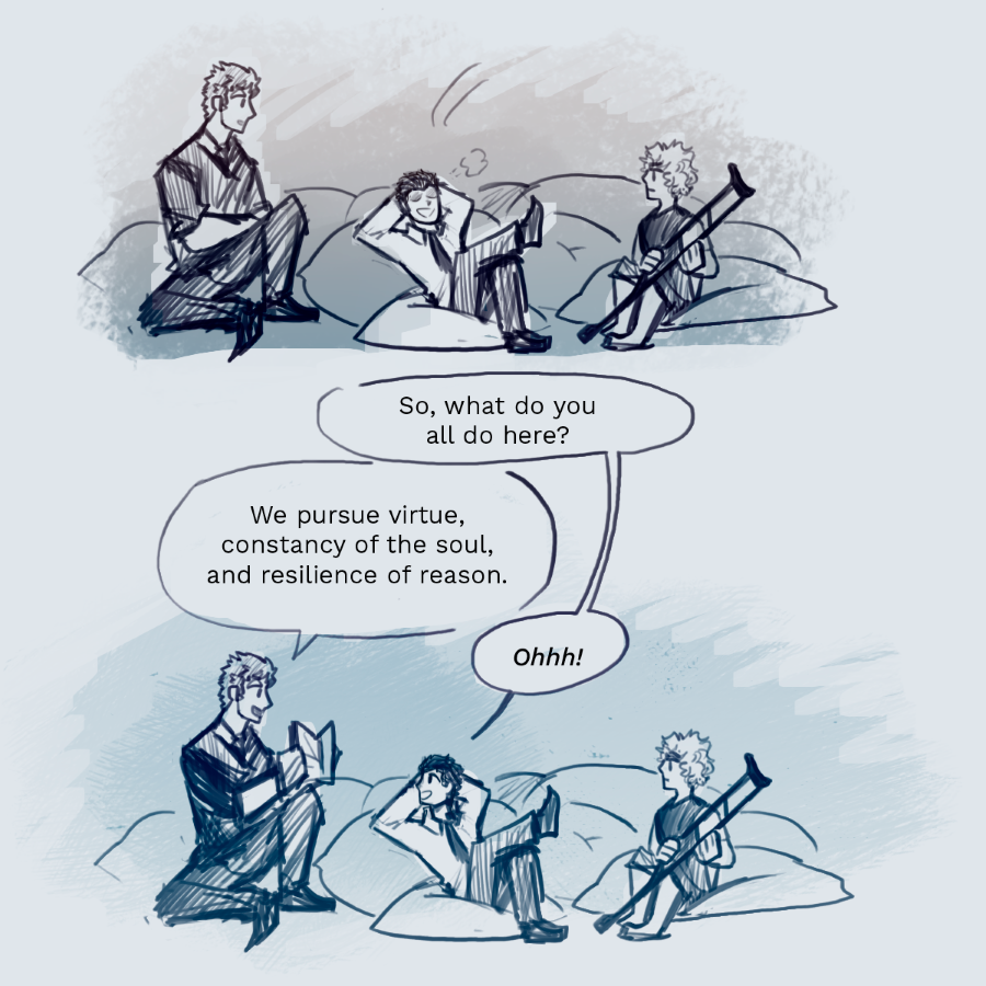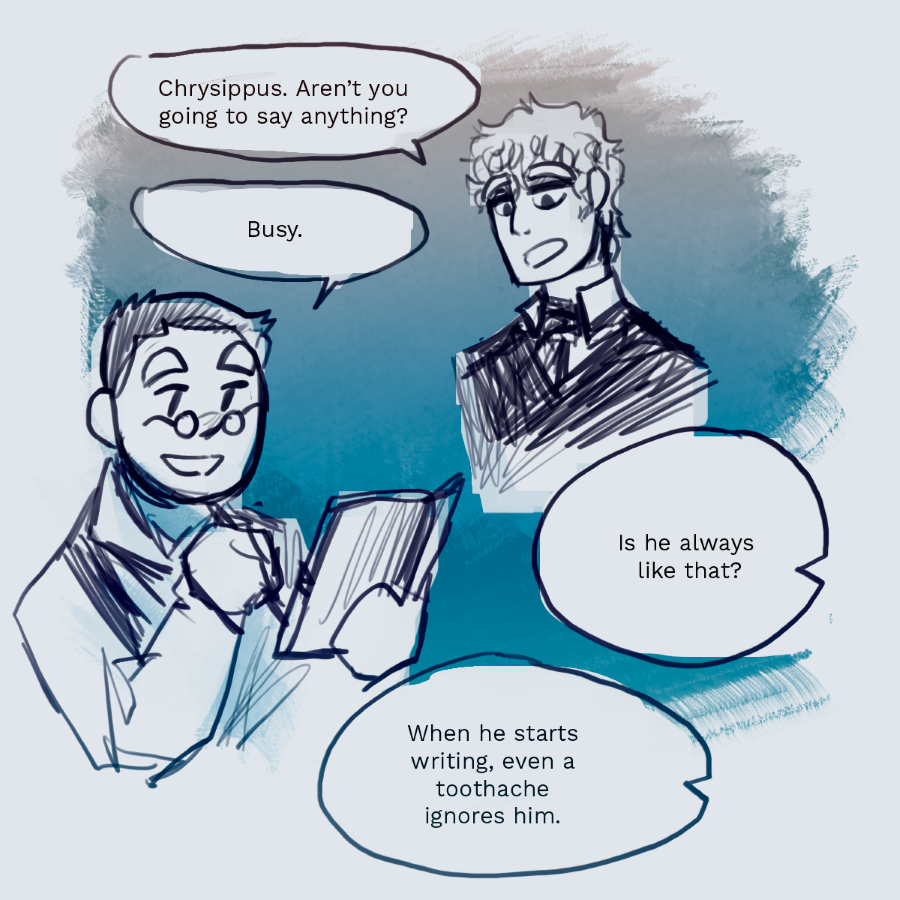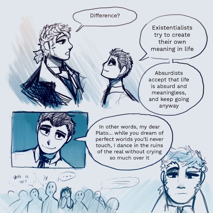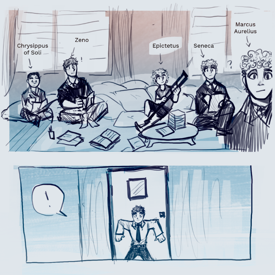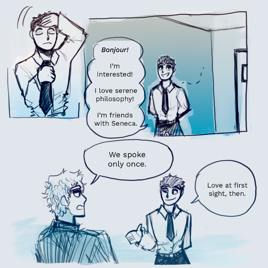 Lucius Annaeus Seneca, a diplomatic and patient Stoic, starts the school year blessed with the presence of chaos incarnate and social exile: Albert Camus, the school’s persona non grata. Seneca, you just wanted peace, didn’t you?