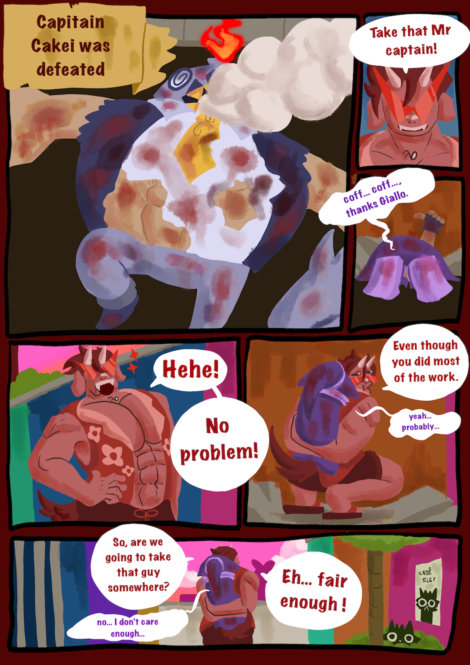 After a great calamity, the world was filled with magic demons and overall wackiness!! Hundreds of years later, powerful tyrants rule the world! Despite that, brave adventurers and criminals roam the skies, land and seas, trying to find their own greatness! Among them is Giallo, a headstrong fire demon that uses musical magic! After reencountering his old childhood friend, Mov Purpur a visual magic user, they must face against all sorts of terrible opponents and have incredible adventures together! What secrets about this world's past, present and future they'll uncover? And what friends and foes they'll meet along the way? You can read to find out!! I hope you have fun!!