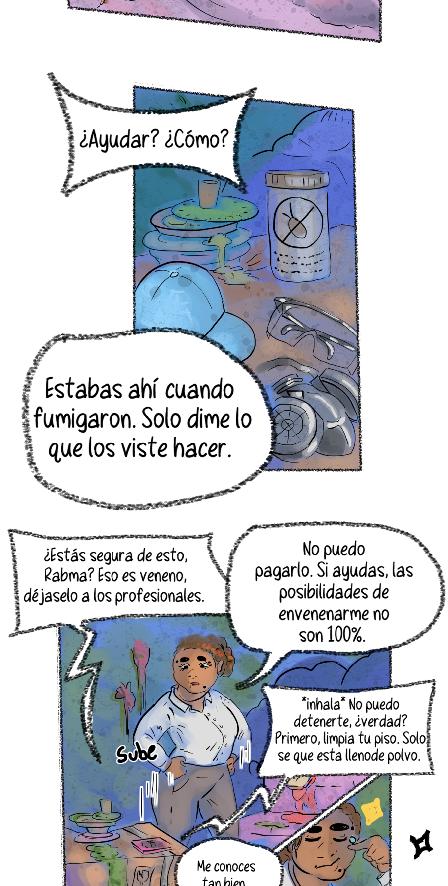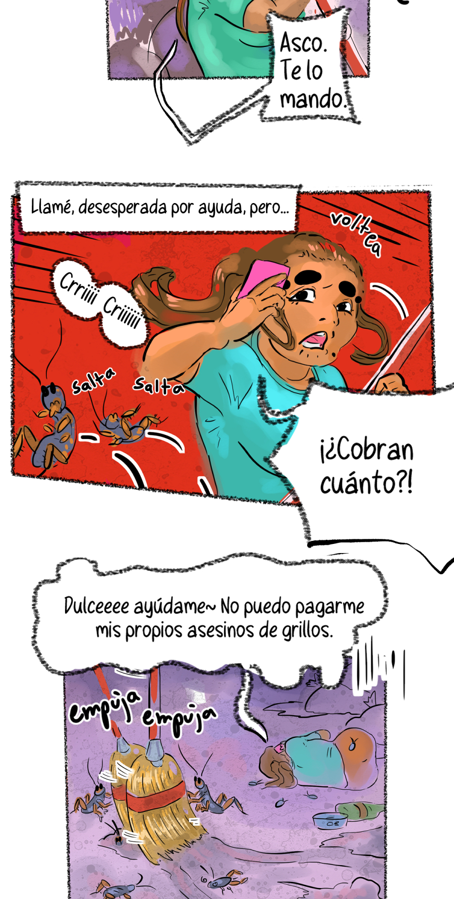 Quien se estaba riendo afuera de la ventana en la pagina anterior? es otro grillo? donde se oculta?? con tanta maleza y basura podria estar en cualquier parte!