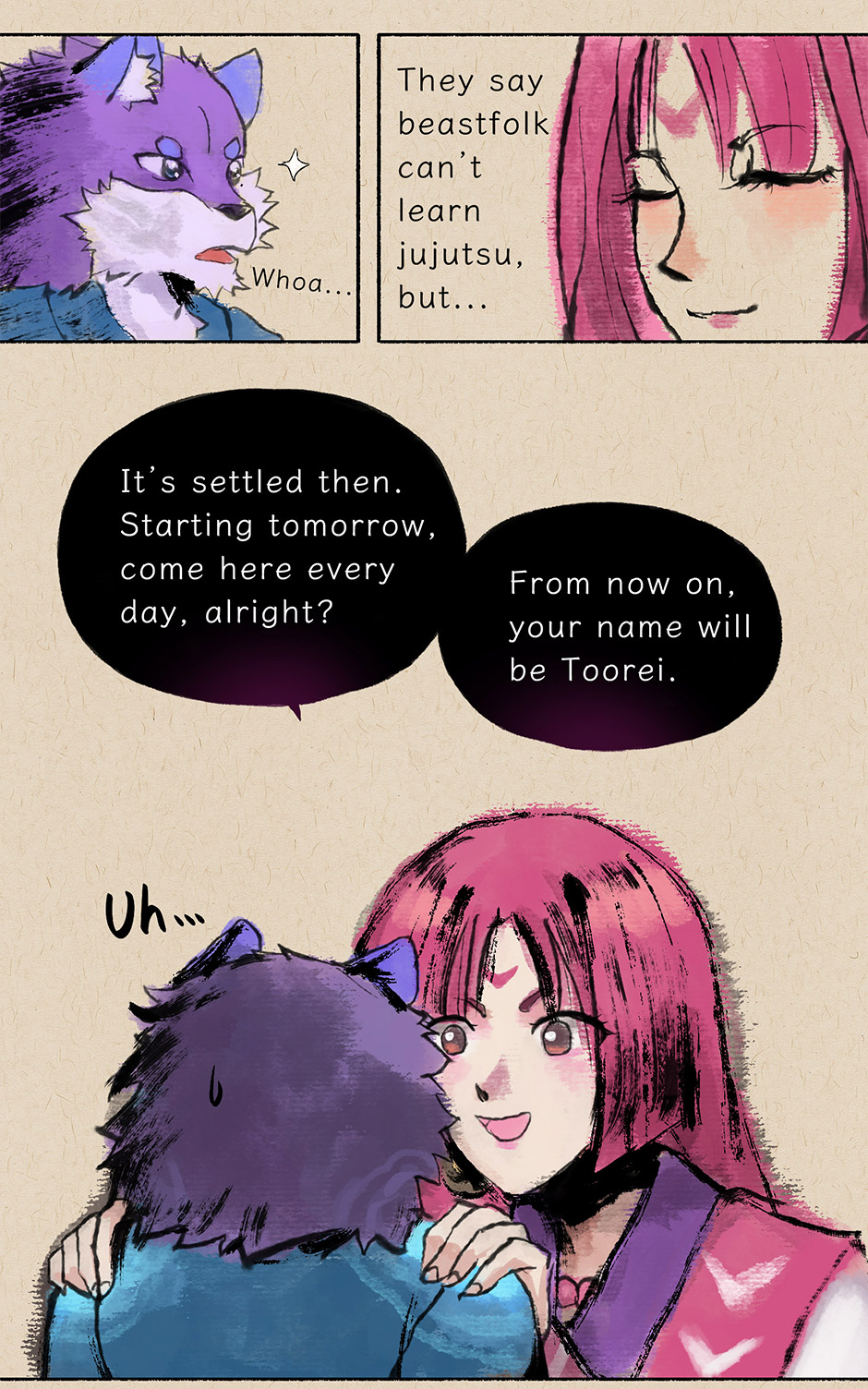 Hello everyone. RAW Episode 14 is complete. This episode's story is about Toorei's childhood encounter with his master, Ui.