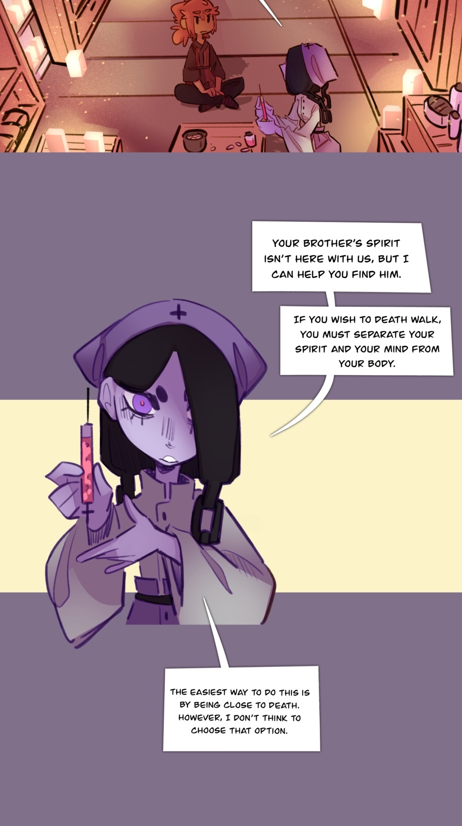 Dark supernatural fantasy about three brothers navigating the spiritual world full of deities, chained spirits, poisonous plants, visions and books that quite literally come to life, all while outrunning death "herself."