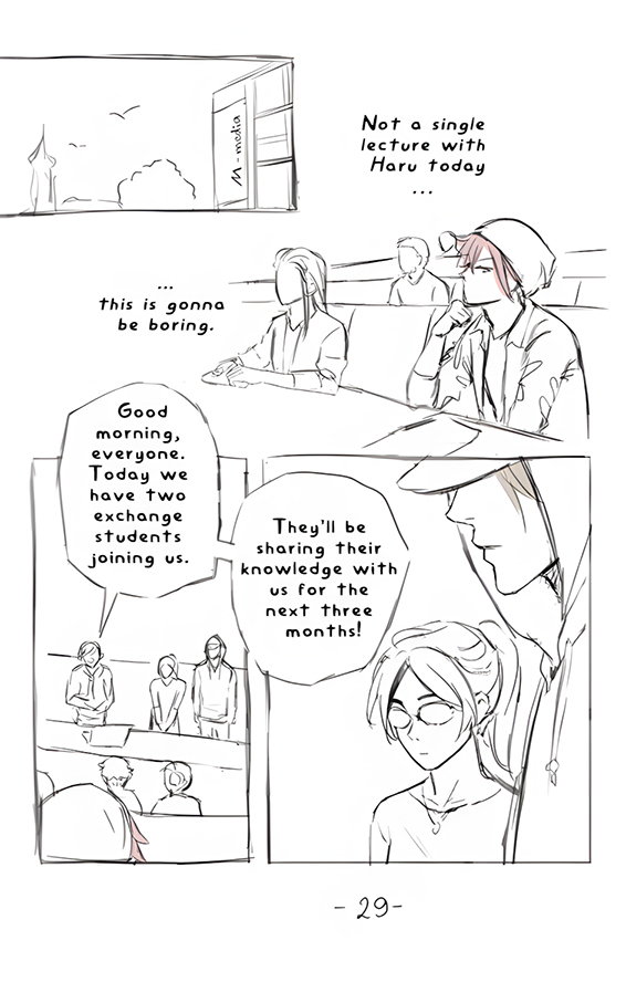 Sorry if the sketches here look a bit messier than before. That’s because they’re older than the first ones. The next chapter will look a little cleaner again!