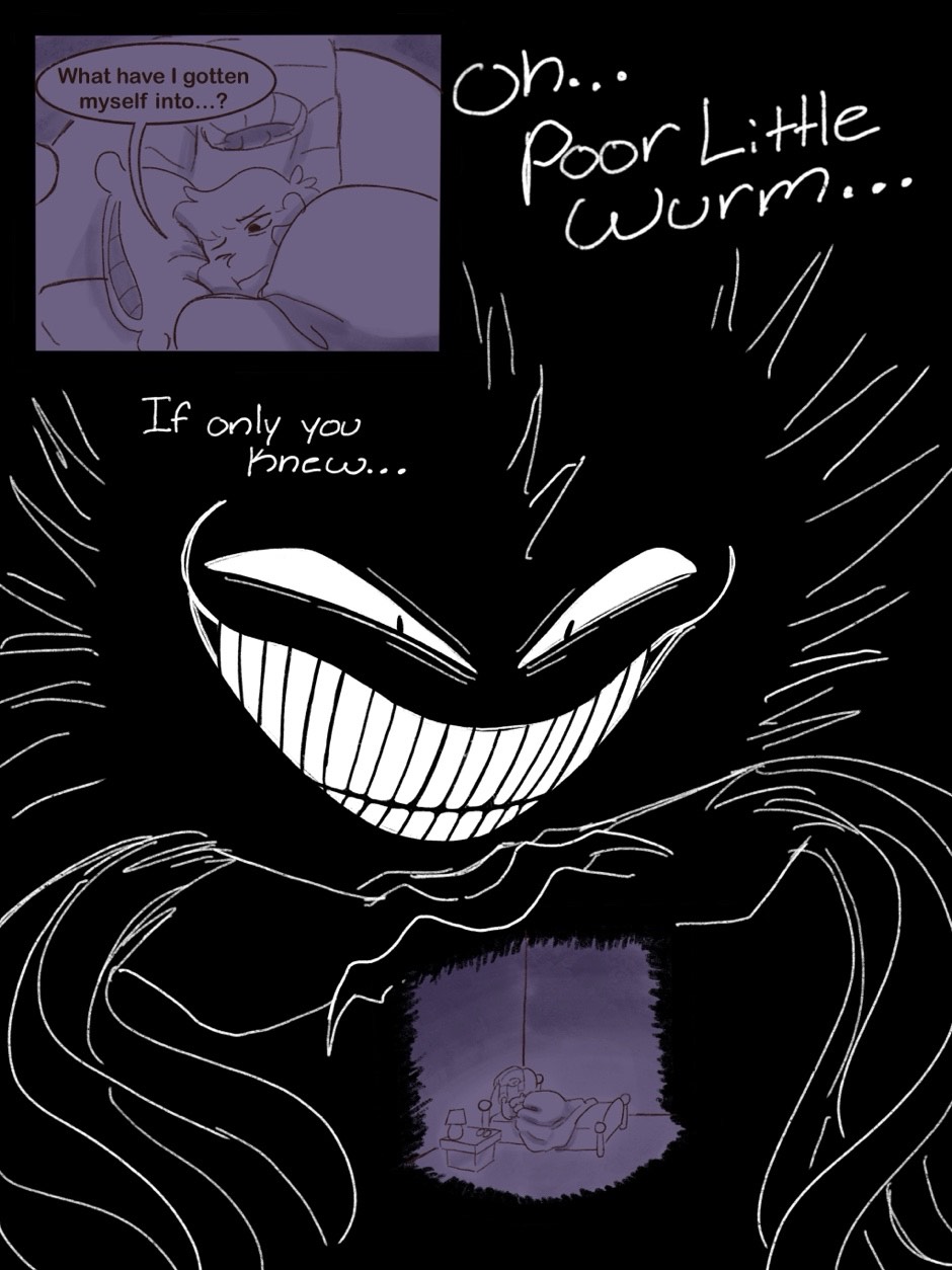 A little girl name, Hazel, who has to move in with her aunt, Amber, due to some… unfortunate circumstances. On the very same night she moved in, Hazel found a large black and white door within the basement of the house. Behind it was an entirely different part of the house. Hallways upon hallways covered in overgrowth and rotting wood with no sign of ending. The Wurmwood. She explored the strange world with curiosity and wonder before running into the main resident of the Wurmwood. A shapeshifting monster that goes by many names, but is mostly known for being The Boogeyman.