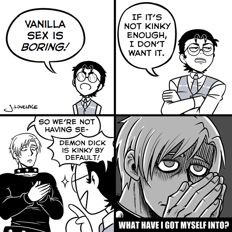 Warning for: dark humor, adult themes, cannibalism, teratophilia and body horror