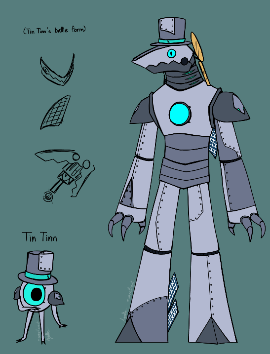 Tin Tinn's honestly been the favorite child of the villains so far [despite the fact most of them aren't even shown off yet], getting several redesigns that range from simple to entirely 3d for some unknown reason!