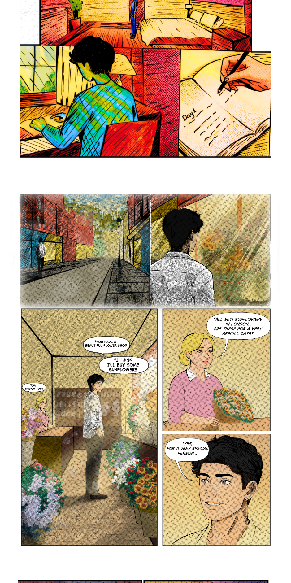 During fifteen days wandering through foreign streets, Blue buys fifteen different bouquets. He doesn’t know which flower Fin loves, he only hopes that among those colors and scents, one might touch Fin’s heart.