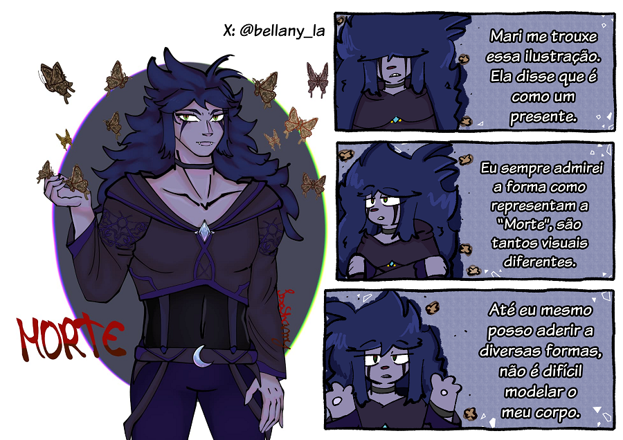 Simplesmente um dos cap mais lindos até agora, eu amei como você fez a ambientação, os quadros e tudo! Animada pra ver a dinâmica da Morte e da Vida a partir de agora...Já tenho pra mim no meu head canon que eles tinham um romance hahaha