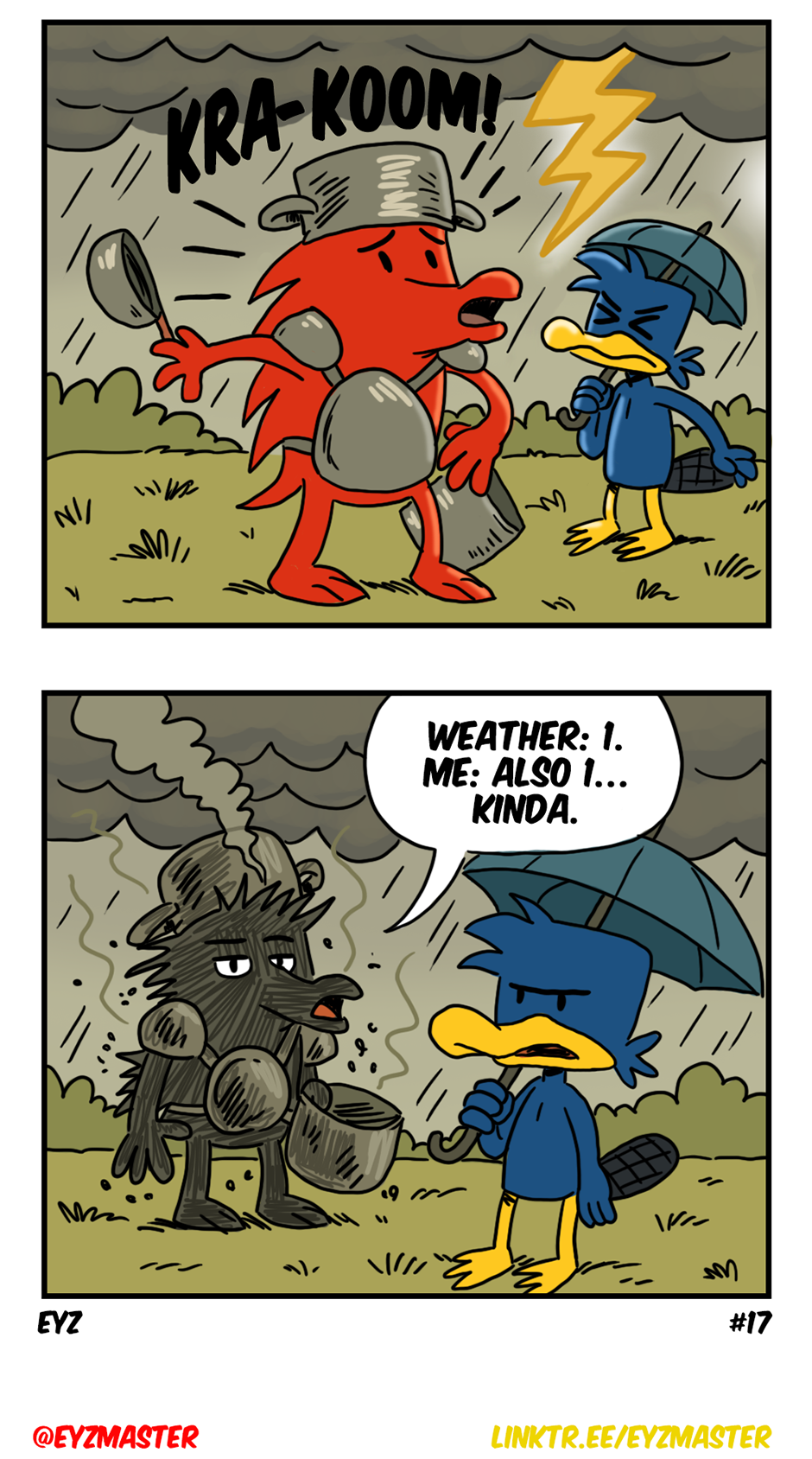 Bruce vs. the storm. The storm wins… but Bruce claims a “technical victory.” ⚡ Thanks for reading — Quack’s given up explaining basic science at this point.