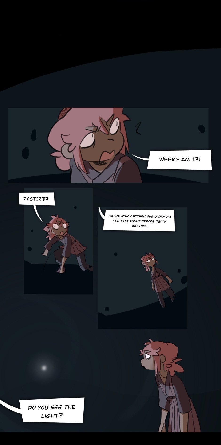 Not quite alive, not yet dead but dying. Deathwalking in a fantasy where he lives out his dream, of being alive with his little brother.