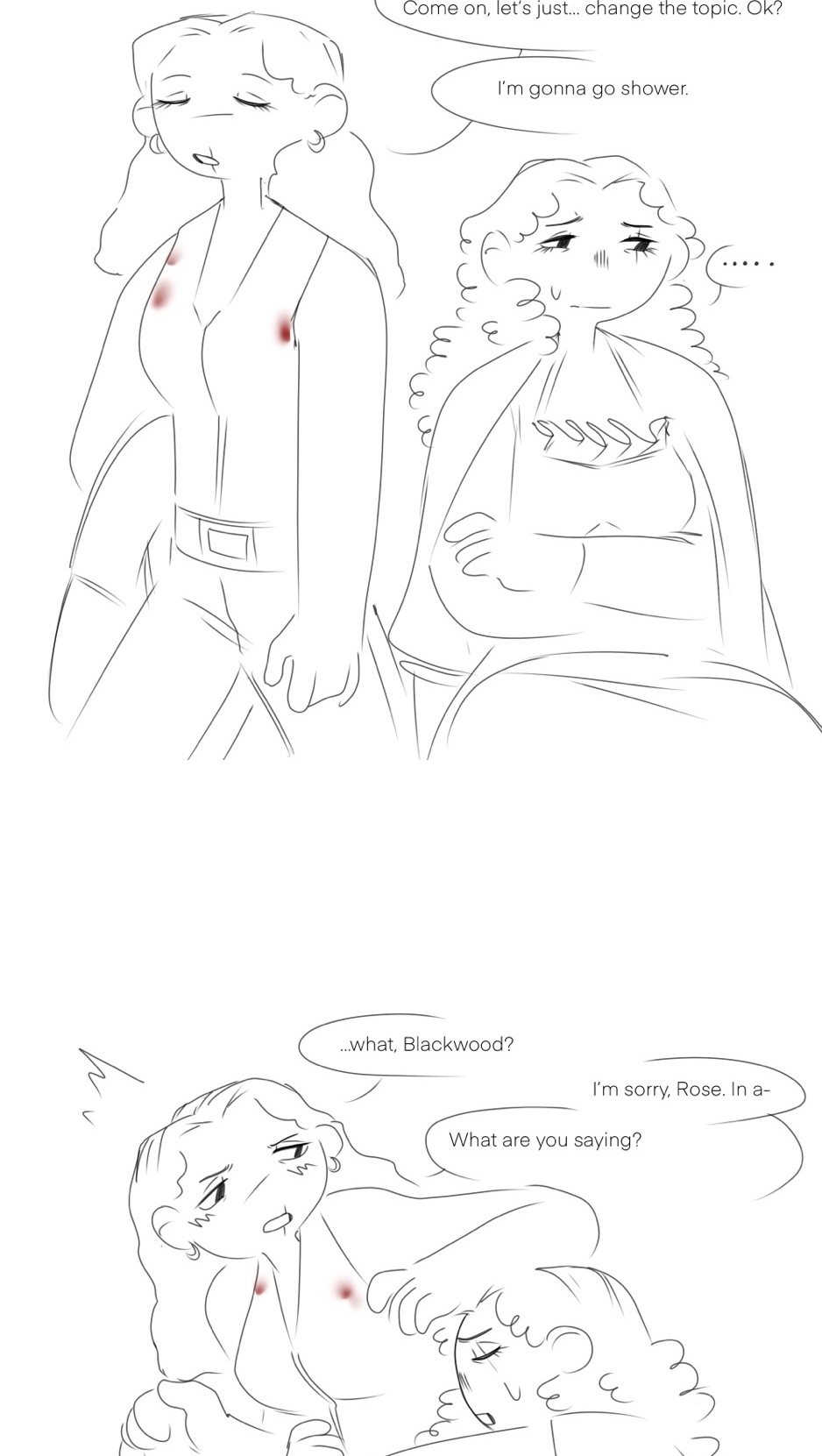 And then they showered and there was no more angst. I’m gonna start posting additional content to Cara. (Rose, 24, Taj, 25, both she/her)