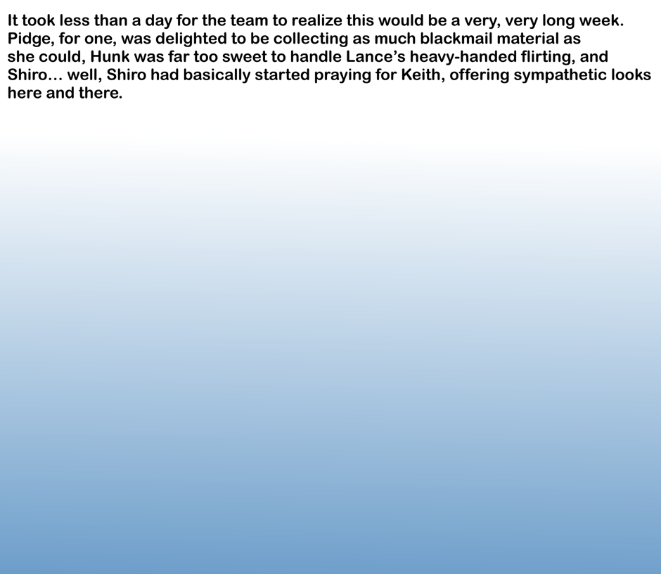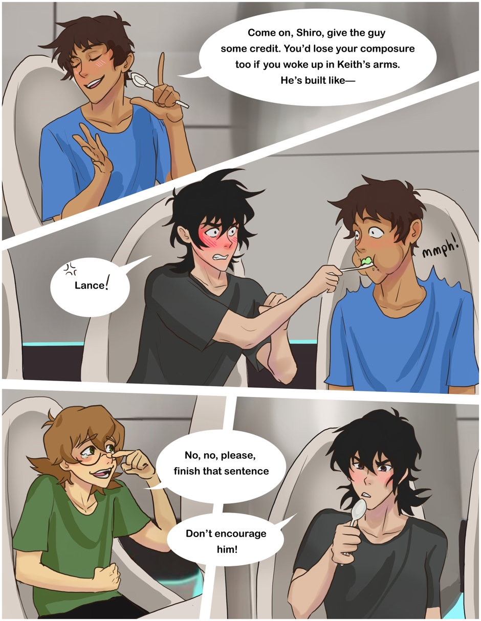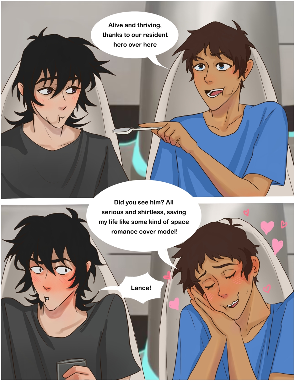A Klance Love bug au comic featuring Keith/Lance pairing from Voltron! Keith and Lance are on a brief mission on an alien planet collecting supplies when suddenly Lance gets bitten by a love bug, causing him to absolutely torture Keith with affection. Keith is sure this is how he dies. Both boys are pining idiots. Enjoy!