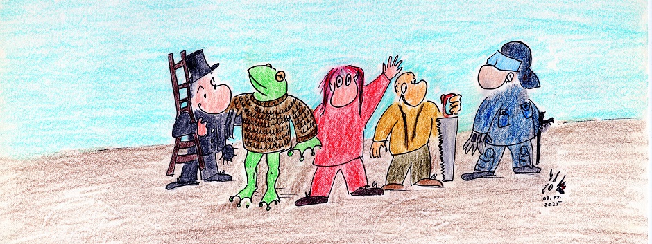 Eine bunte Truppe tritt an in Lauterbach an der Covid: Ein Schwarzer, ein Grüner, eine Rote, der Mann von Walzwerk Flachmann, der sich gerade eine Säge gewalzt hat und ein Blauer, von dem man nicht weiß, ob er nicht doch braun ist. Man darf gespannt sein.