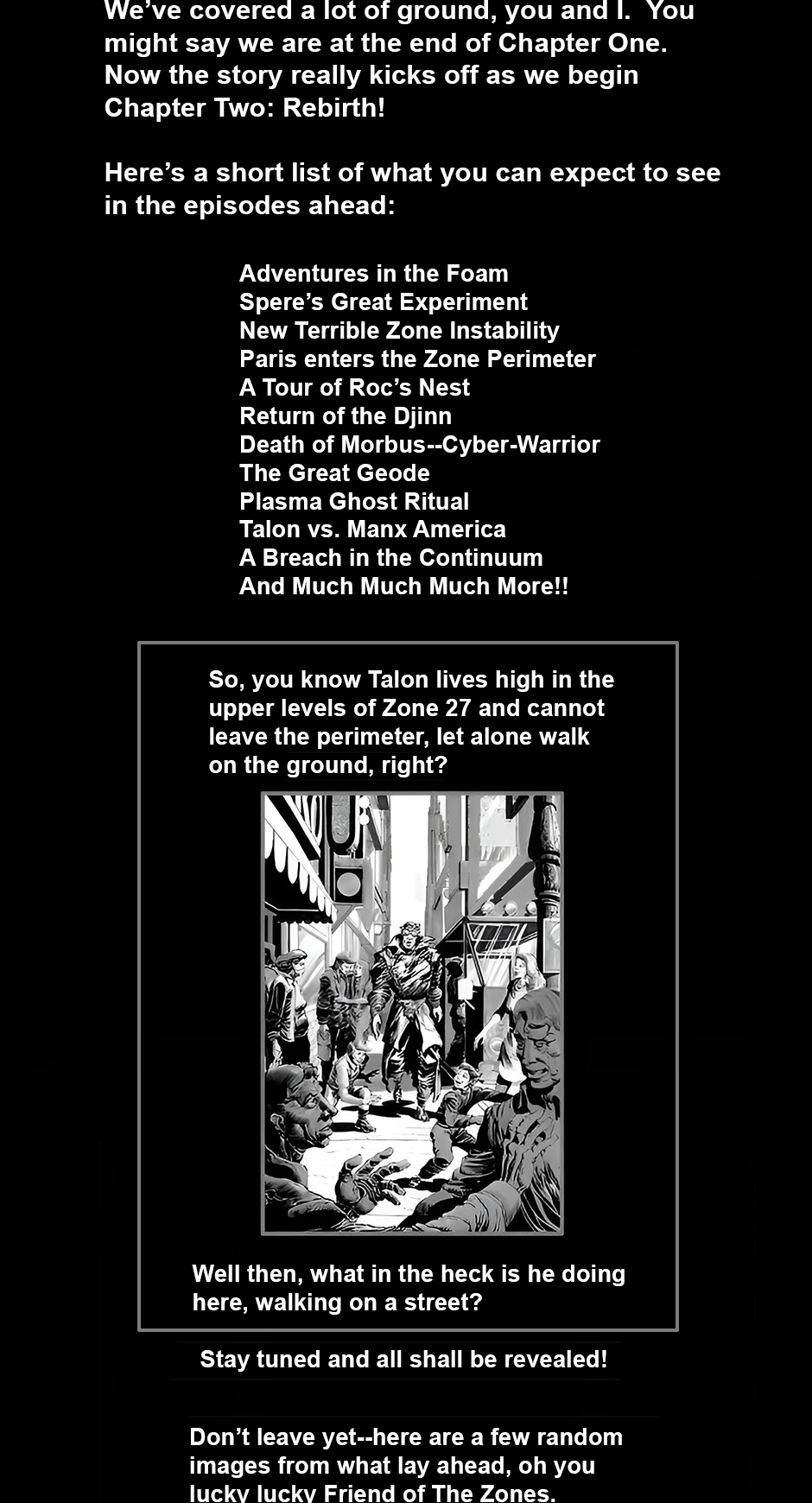 Talon is their leader, living in the heart of New York City in Zone 27, high above the metropolis in the rooftop jungle. While most Dar feel they must destroy humanity to save the planet, Talon sides with mankind and tries to save the planet.