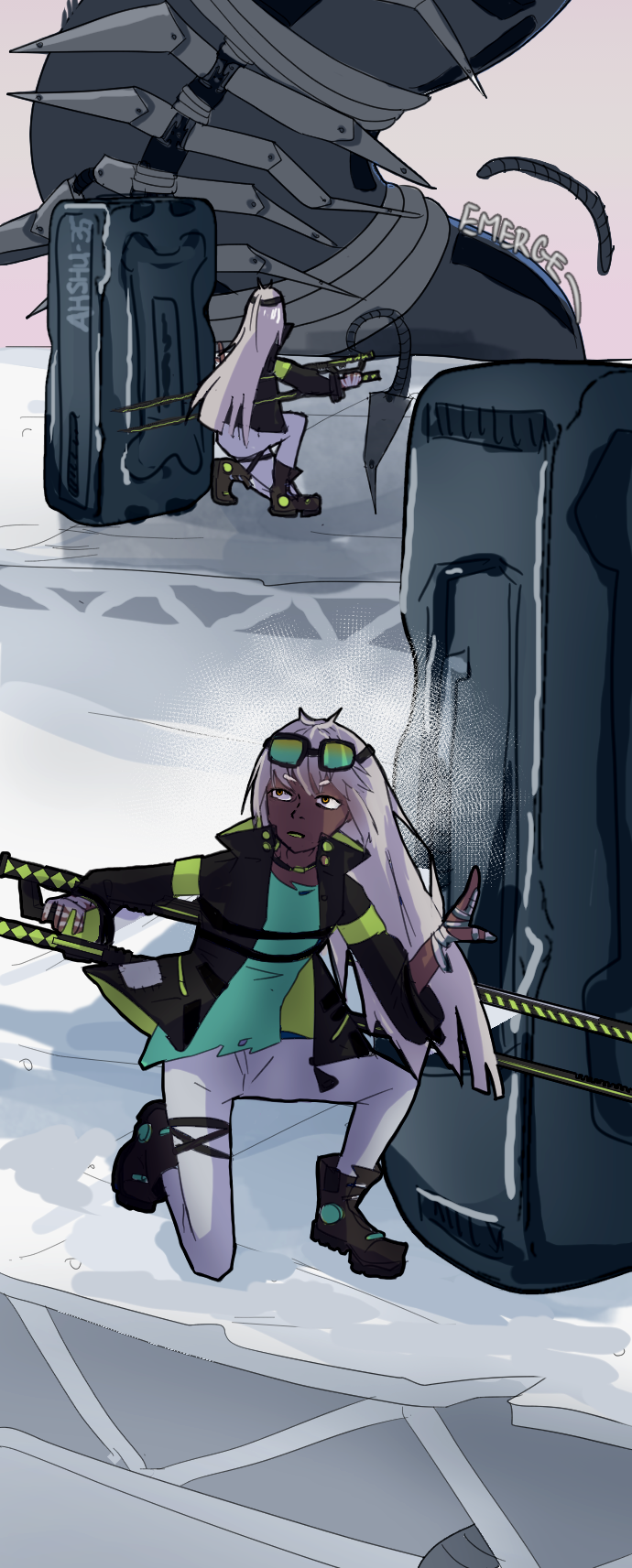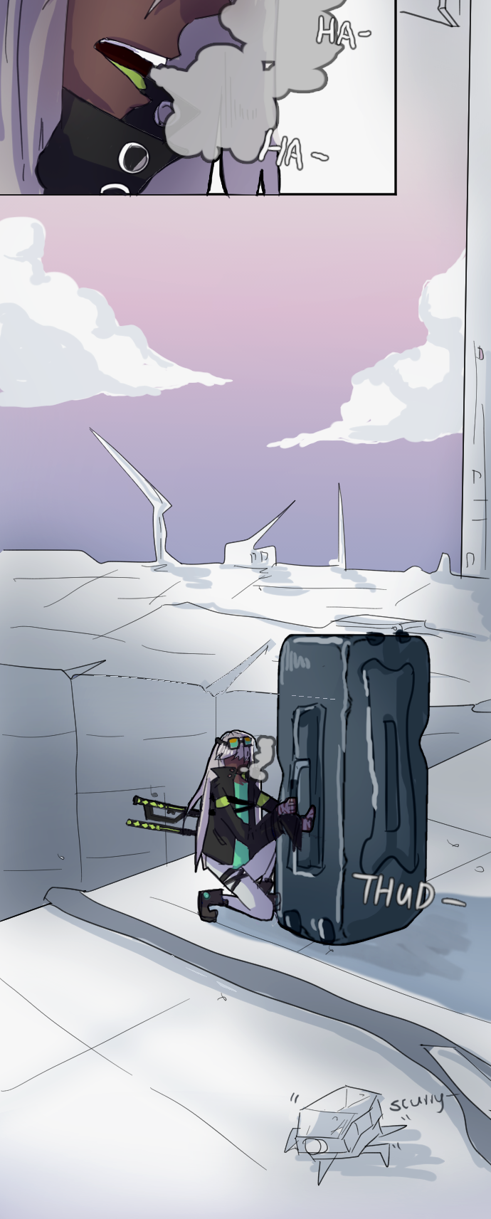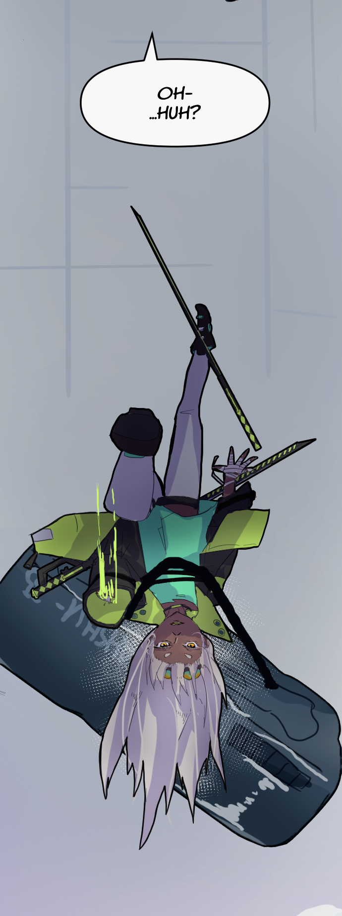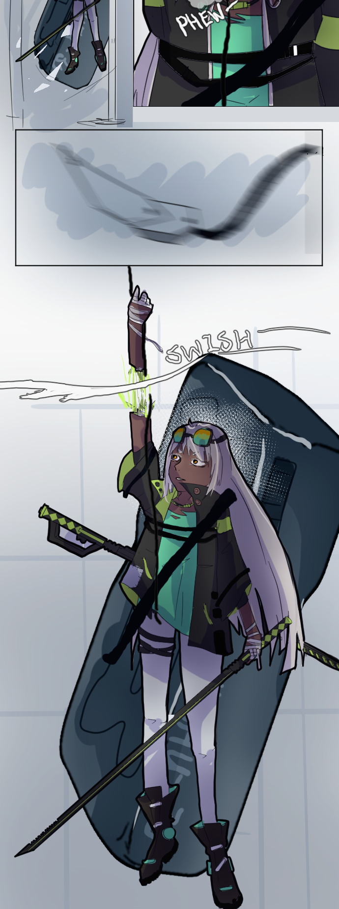 Not sure what her reaction at the end is. Even if she’s a calm/collected type, some readable reaction after having her arm chopped would’ve felt better there.