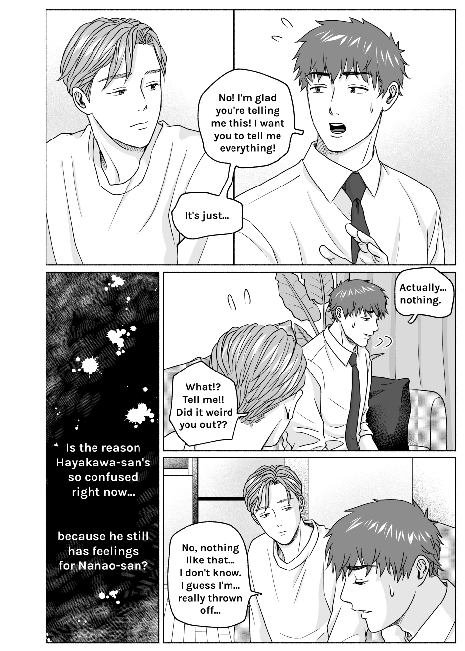 Yayy thank you for your hard work for this episode 🥰 Don’t mind me crying at “The boys we were… they don’t exist anymore.” 😭 I hate Nanao for trapping Hayakawa into staying in the same room, but I trust Hayakawa would be able to stand his ground 🔥 See you again 2 weeks from now ☺️